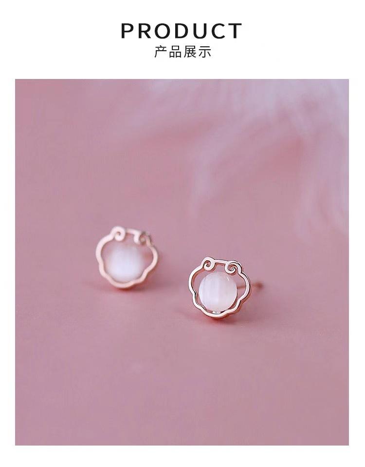 Aretes de botón de plata esterlina s925 Ruyi candado de la longevidad para mujer nueva llegada candado de seguridad aretes retro únicos aretes de estilo chino para Año Nuevo