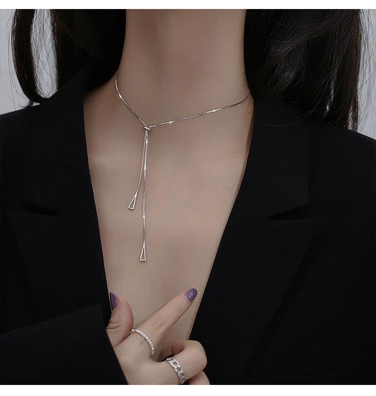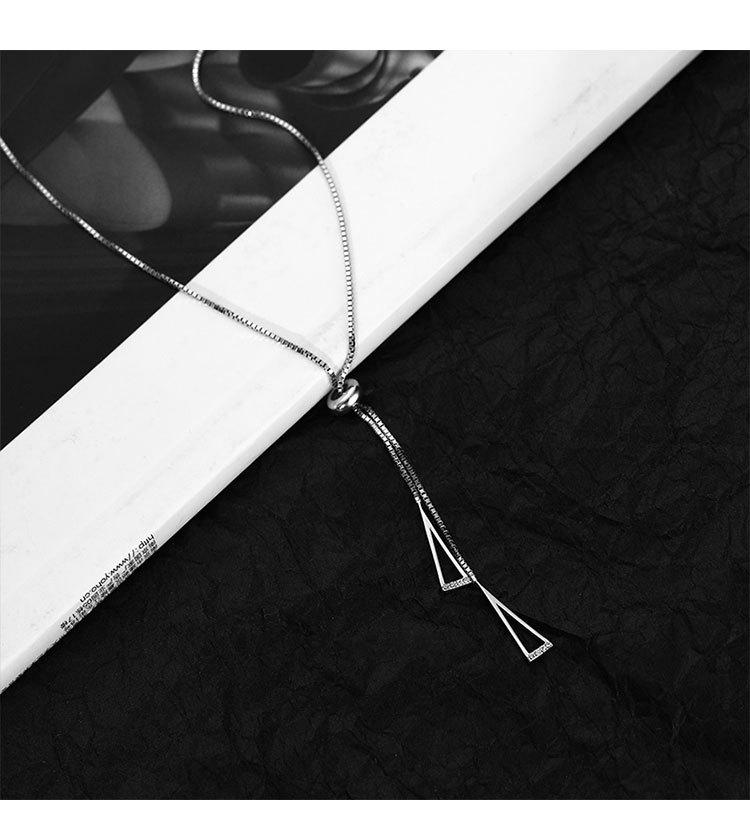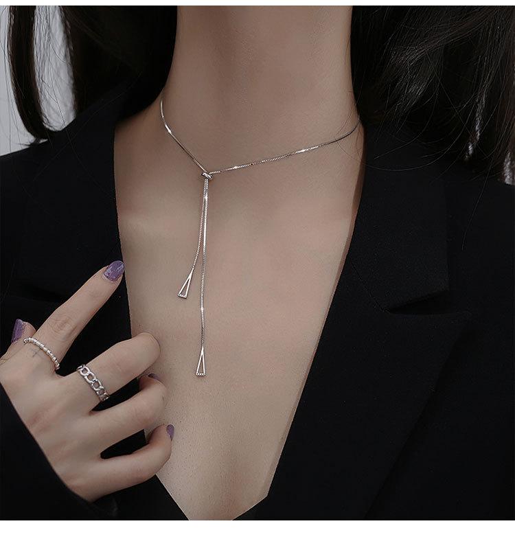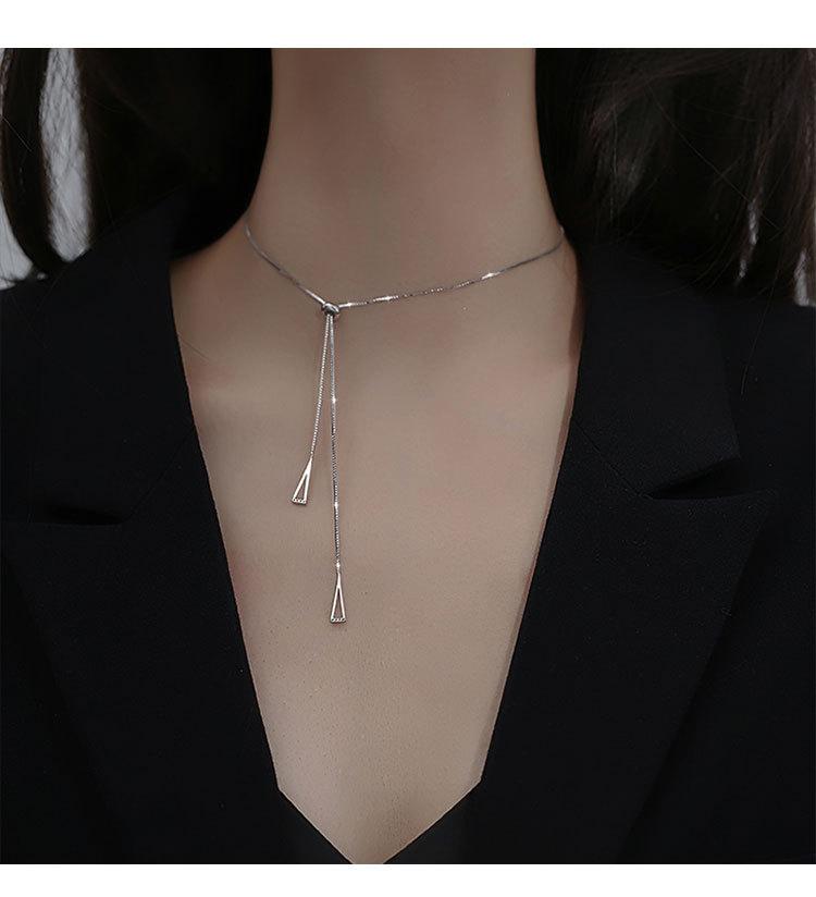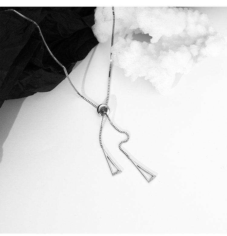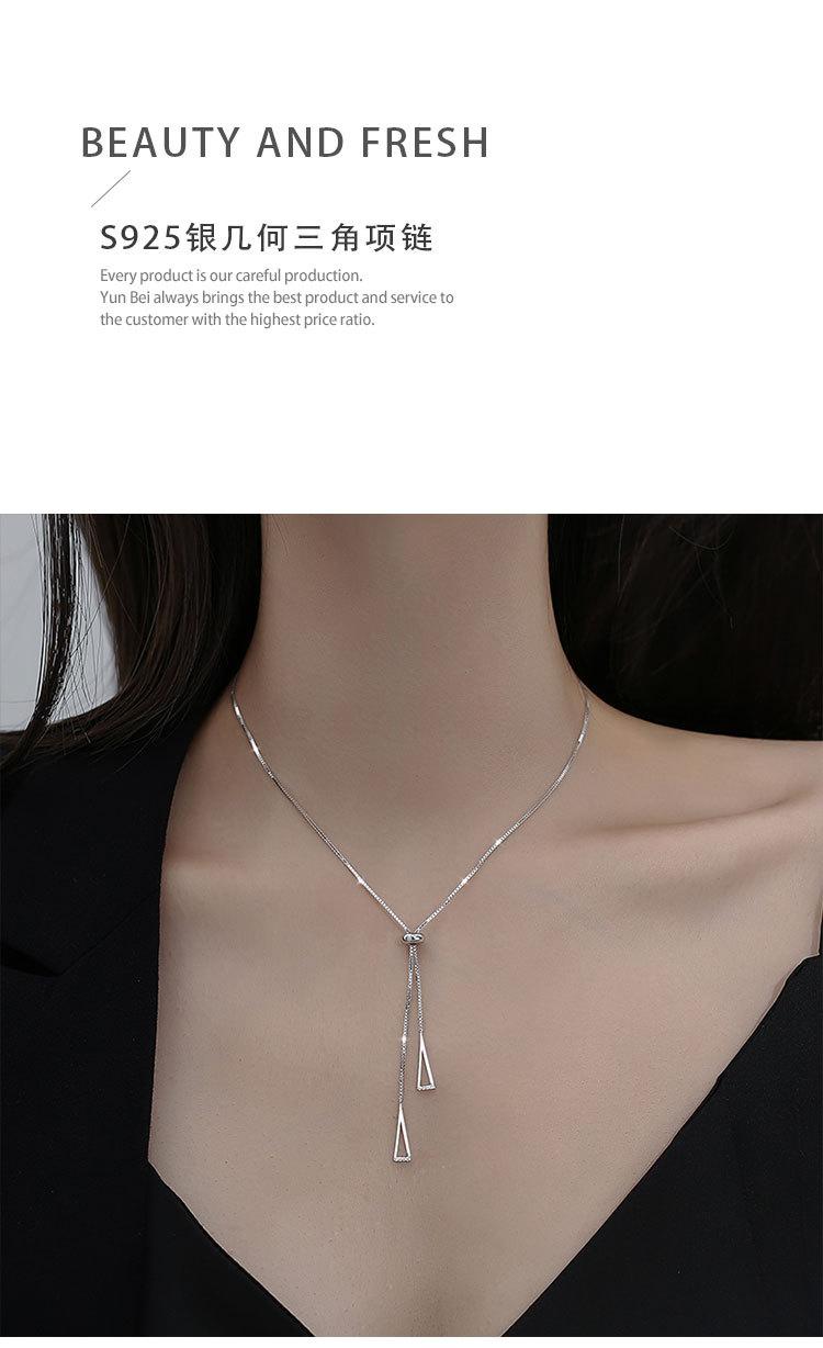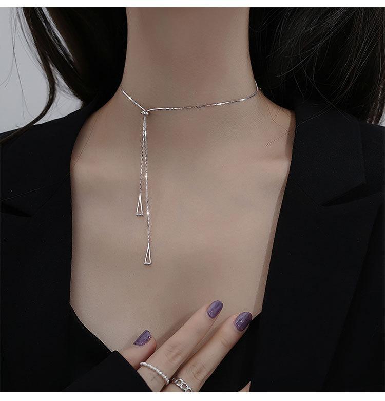 Collar triangular de plata Jufeng S925 con diseño de push-pull y nueva personalidad, cadena de clavícula con diamantes, cadena de cuello de temperamento simple a la moda.
