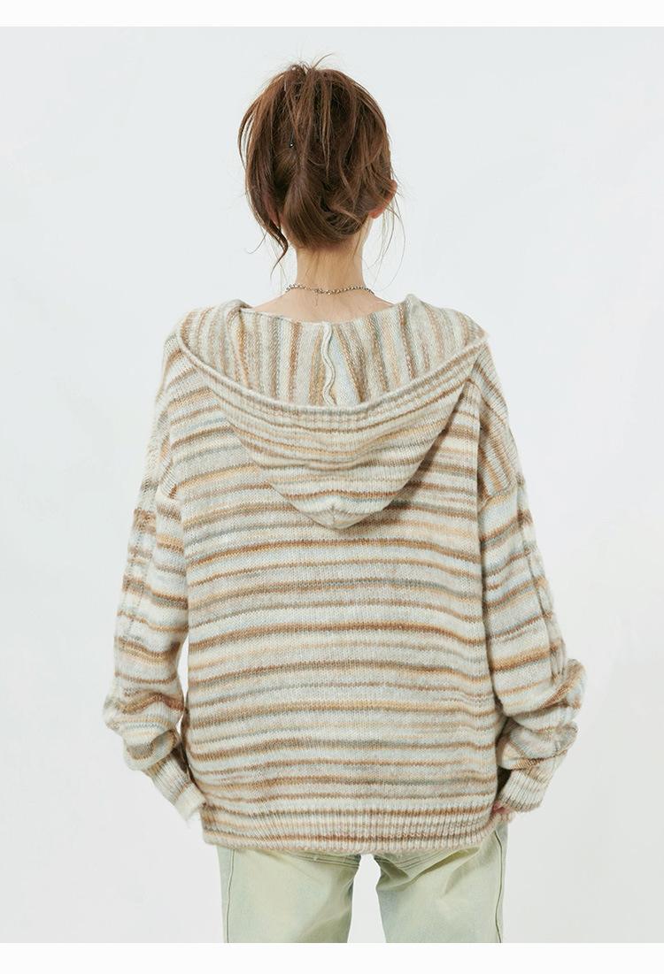 Suéter con capucha a rayas retro americano para hombres y mujeres 2023 Primavera y otoño Nueva marca de moda de otoño e invierno Suéter suelto para parejas