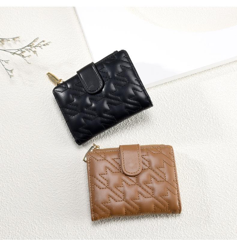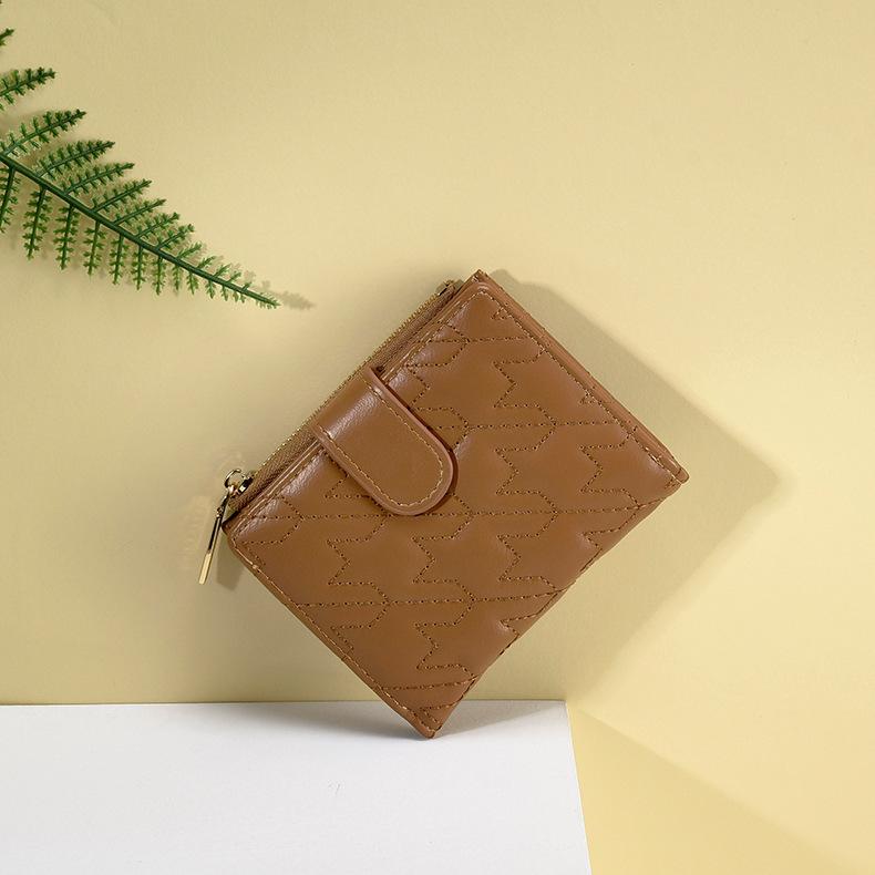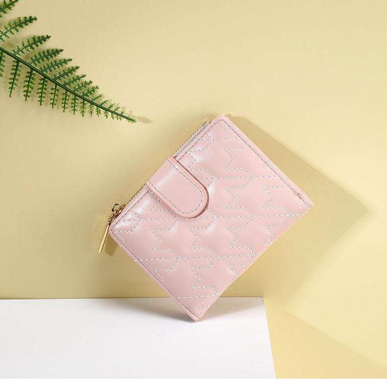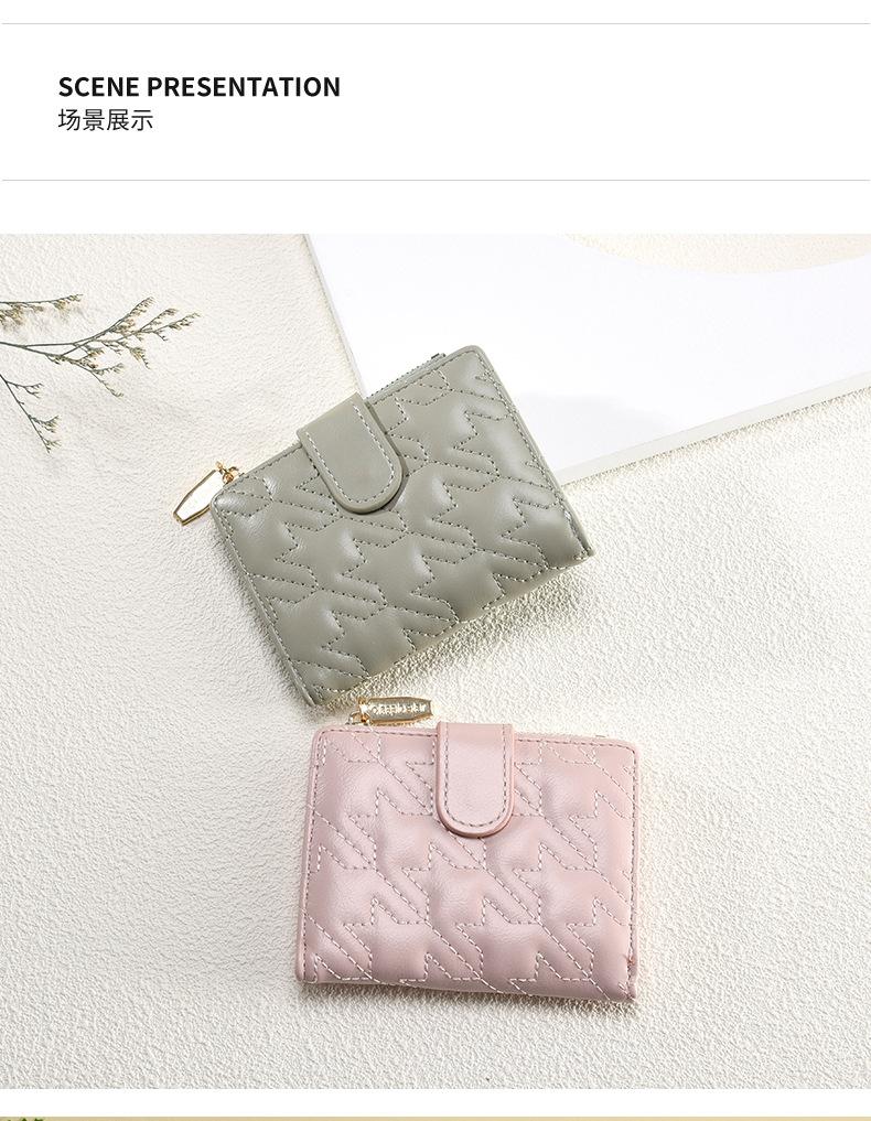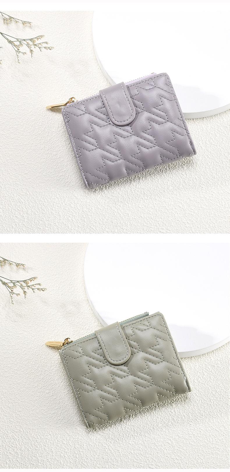 Billetera Nueva para Mujer Cierre Cremallera Enrejado Billetera Plegable Billetera Transfronteriza Multifunción Monedero Estudiante Textura Premium