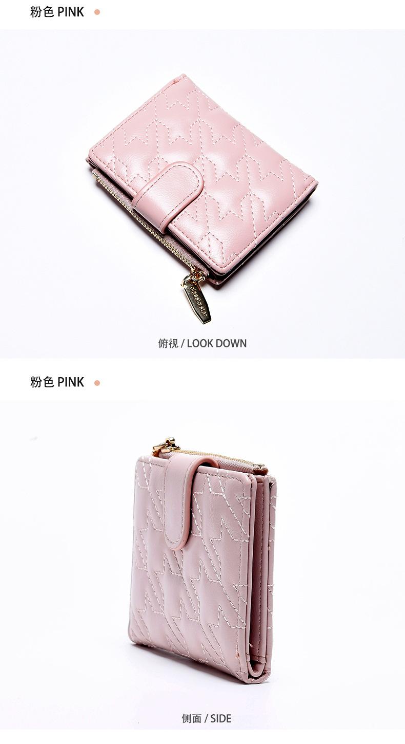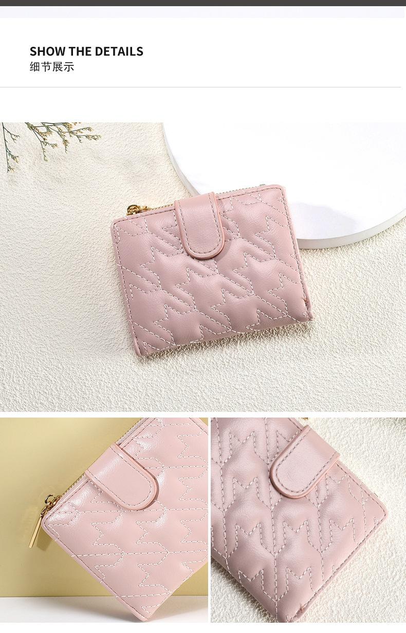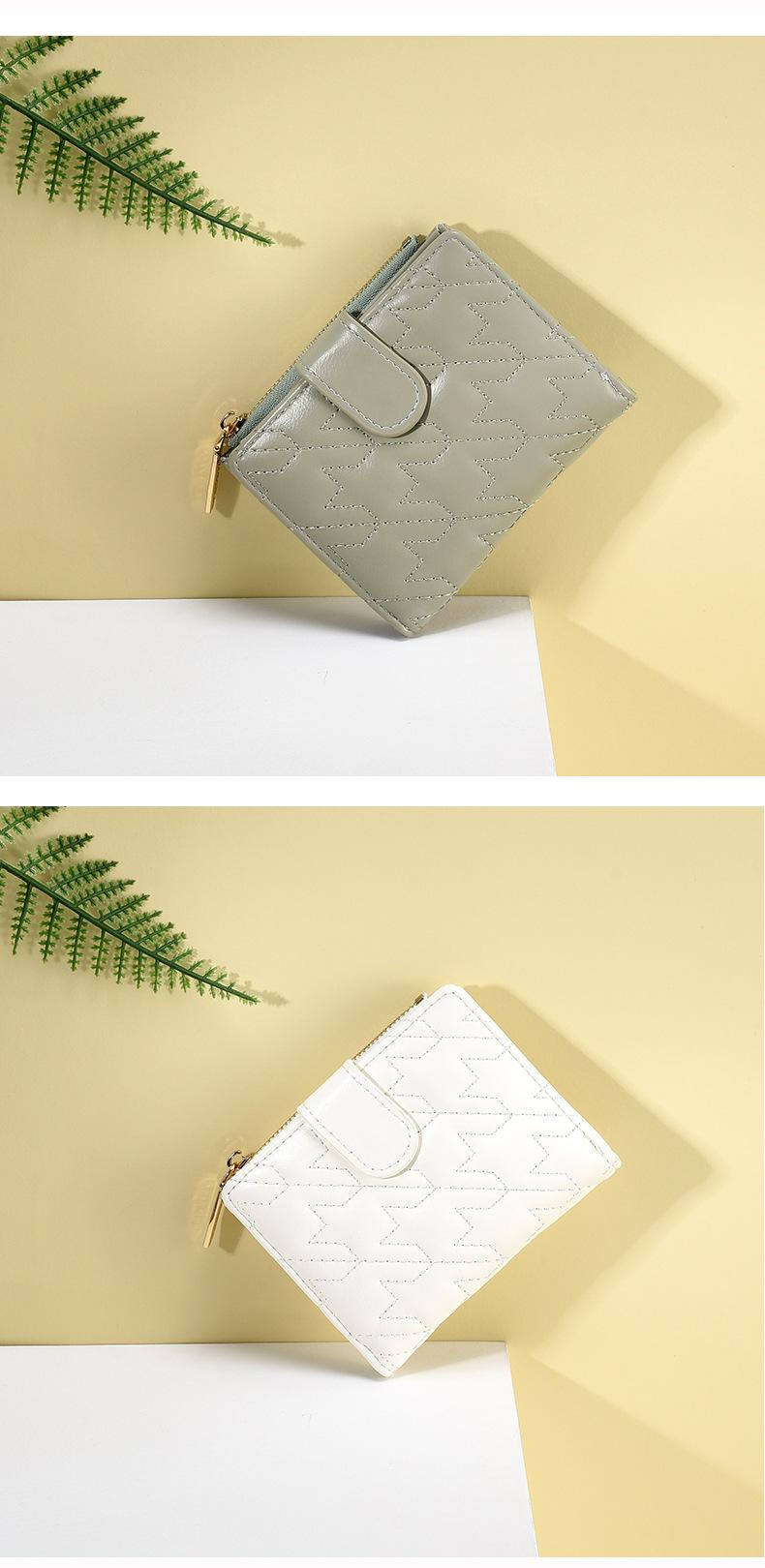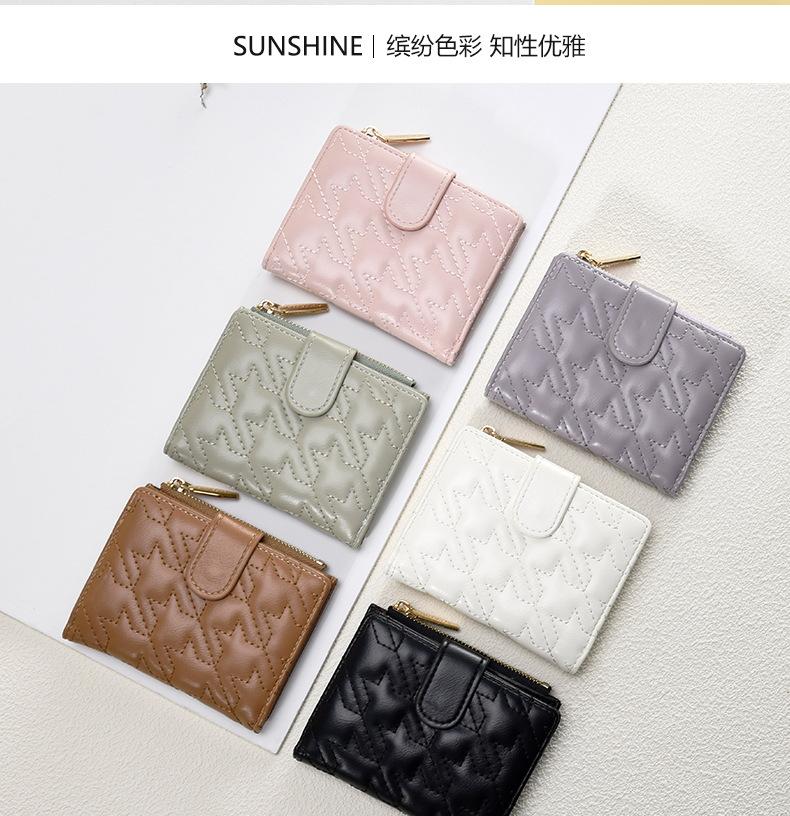 Billetera Nueva para Mujer Cierre Cremallera Enrejado Billetera Plegable Billetera Transfronteriza Multifunción Monedero Estudiante Textura Premium
