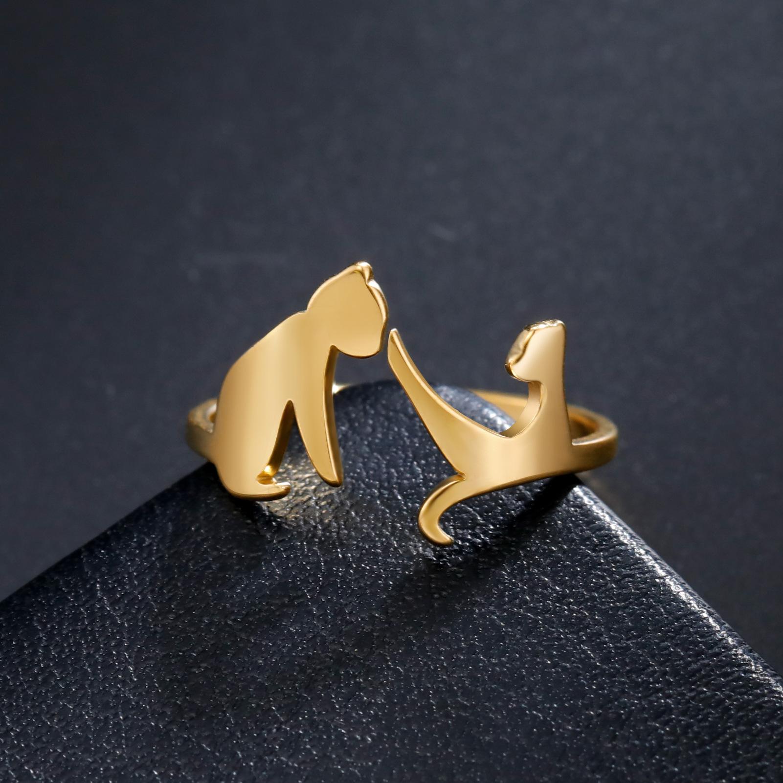 Anillo abierto para pareja transfronteriza gato hombres y mujeres acero inoxidable anillo ajustable joyería de fiesta regalo de aniversario mayoreo