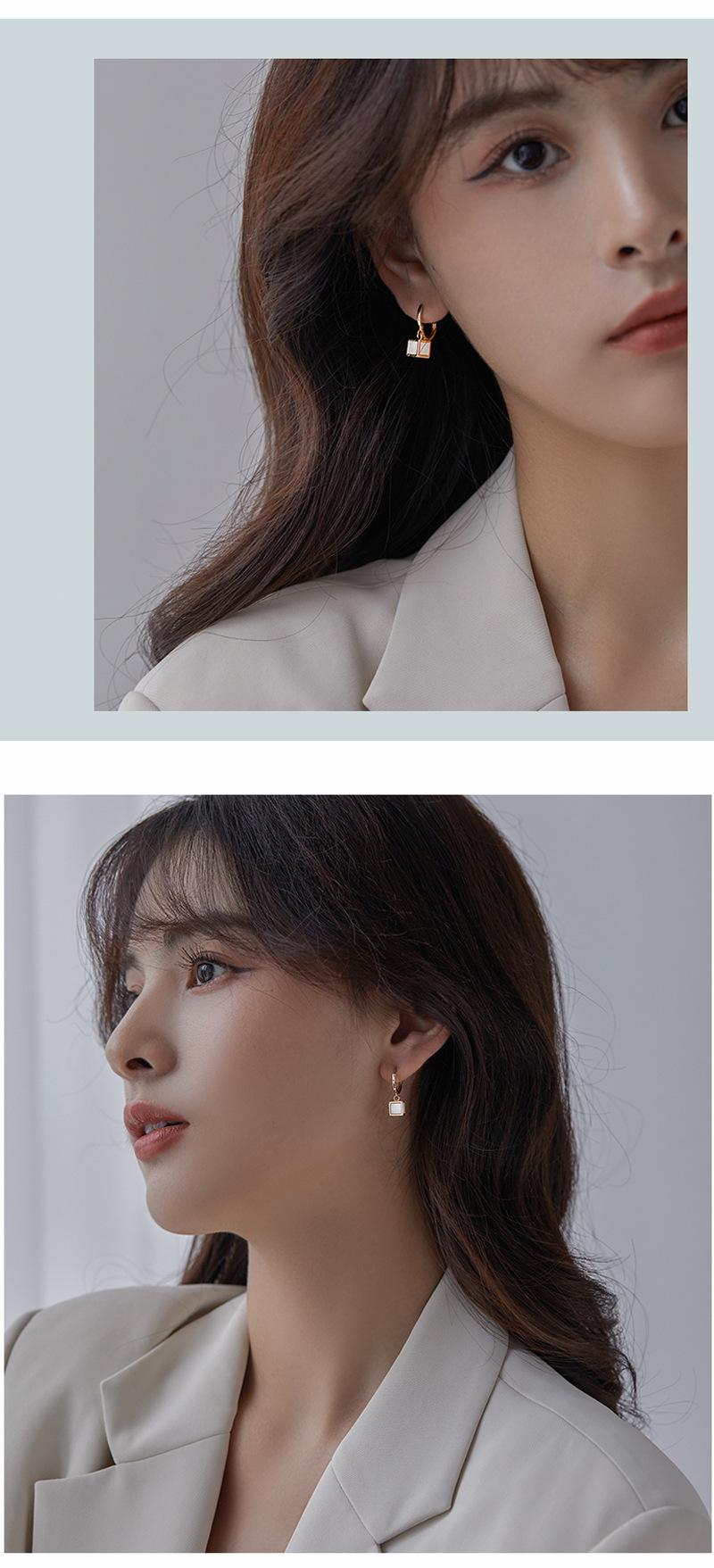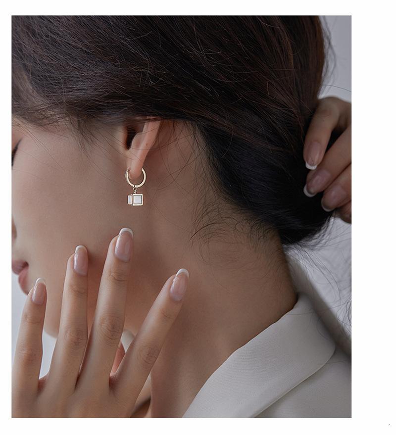 Nuevos pendientes cuadrados de estilo coreano, diseño de nicho femenino, personalidad de moda, temperamento, pendientes de celebridades de Internet, joyería de otoño e invierno.