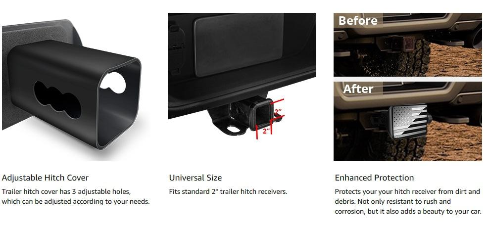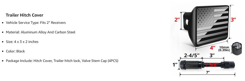 Gancho de remolque metálico 3D estéreo bandera negra tapón antipolvo cubierta para enchufe de coche cubierta de remolque americano con tapón de válvula