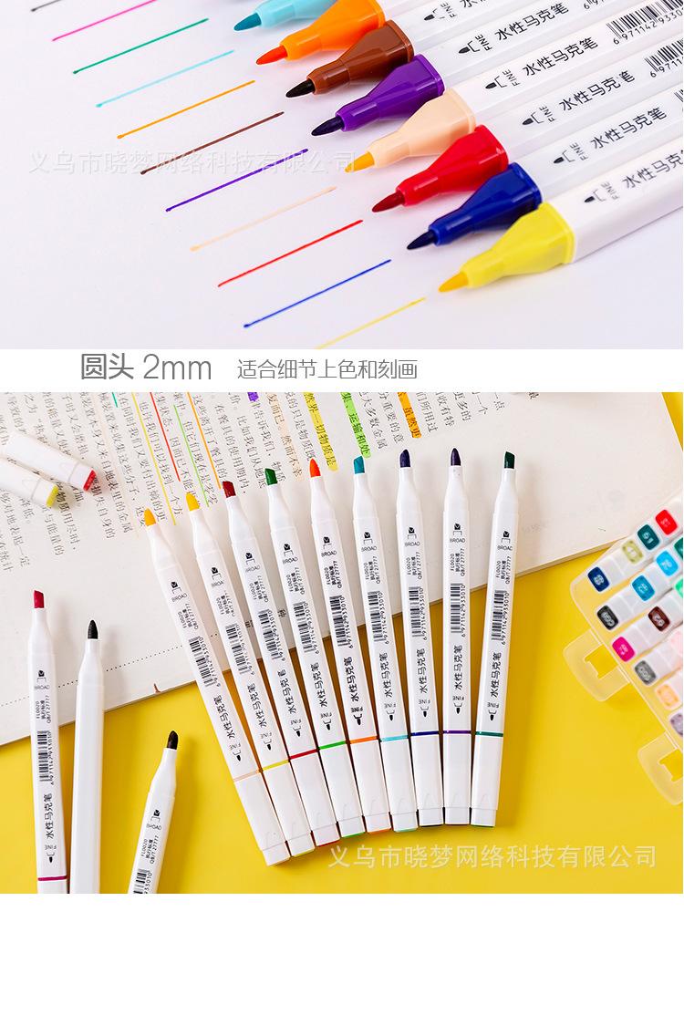 Marcador de doble punta de fábrica a base de agua, juego de 24 y 36 colores, papelería para escuela primaria, bolígrafo Gouline, bolígrafo para pintar, venta al por mayor