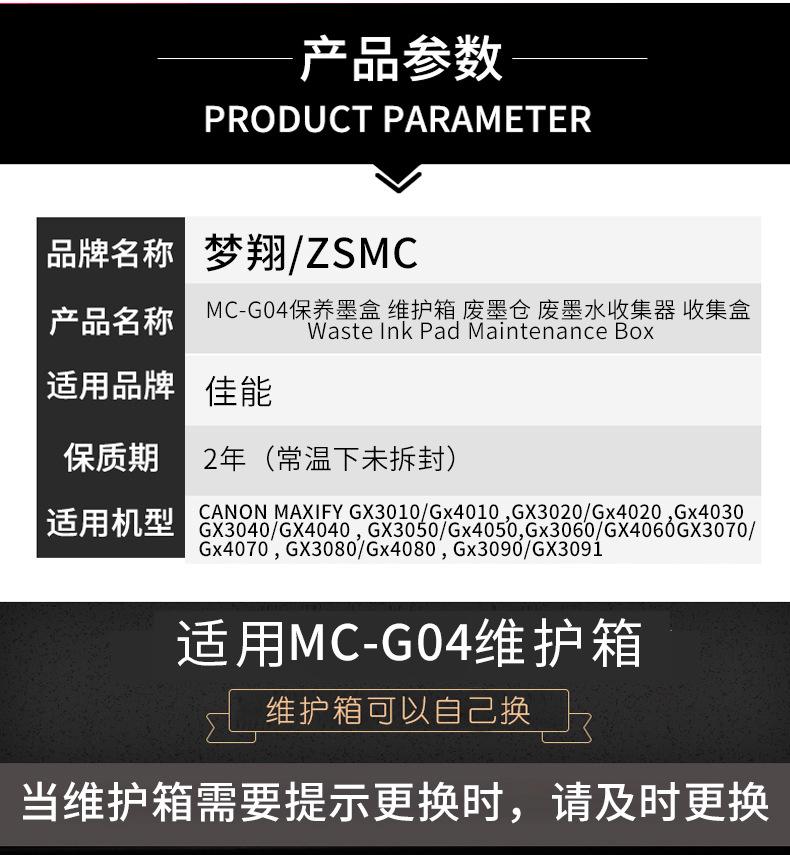 Compatible con cartucho de tinta de mantenimiento CANON MC-G04 CANON G1831 G2870 G3870 caja de mantenimiento de cartucho de tinta residual