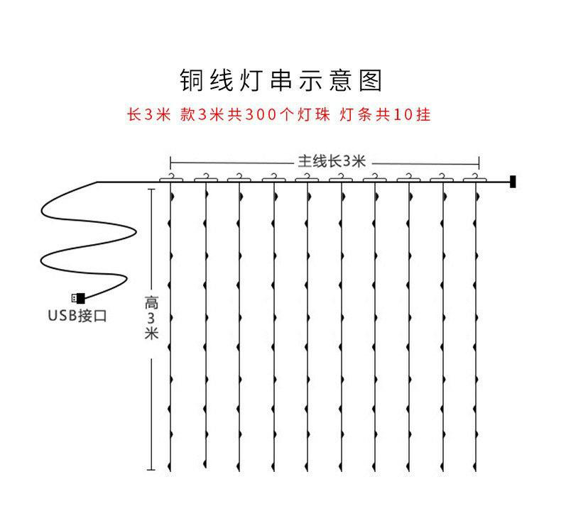 Venta directa de fábrica: luces de cortina de alambre de cobre USB, pequeñas luces de colores, luces de cortina de alambre de cobre, luces de decoración navideña para dormitorio y habitación