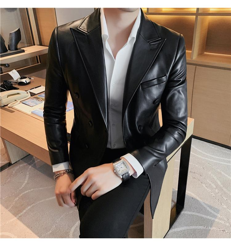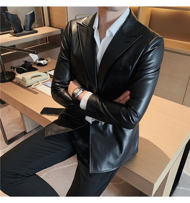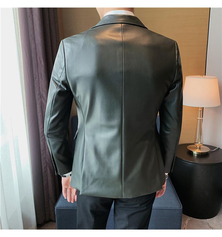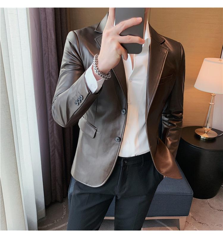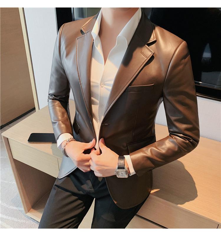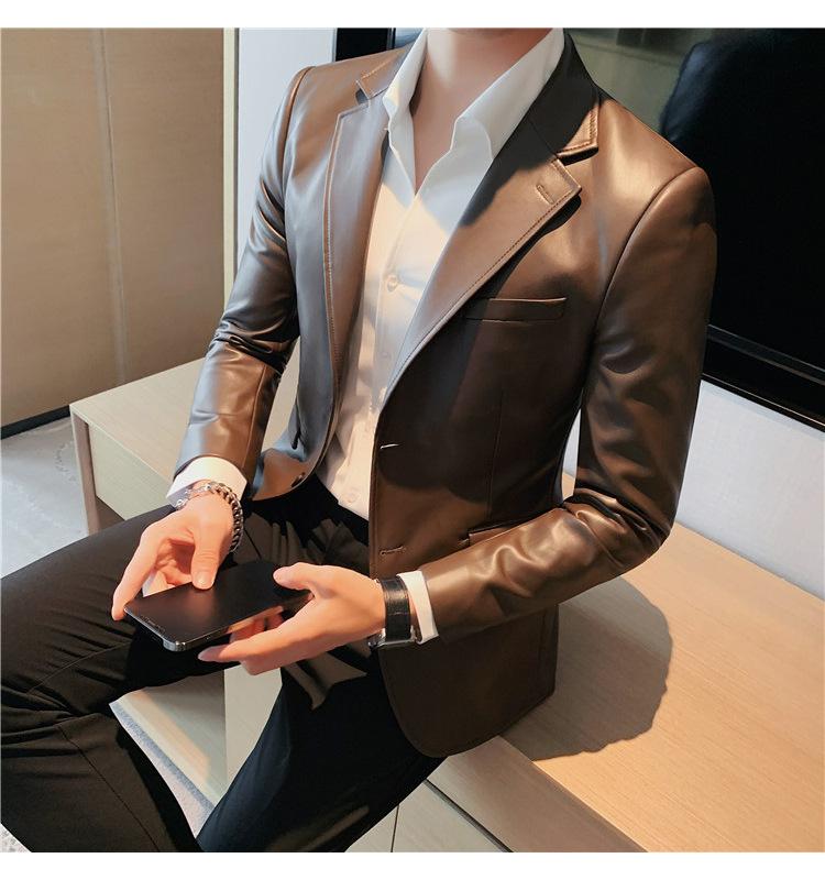 Suministro en Vivo Otoño e Invierno Nuevo Chaqueta de Cuero PU para Hombre Coreana Guapa Sensación de Alta Gama Traje de Cuero Ajustado para Hombre