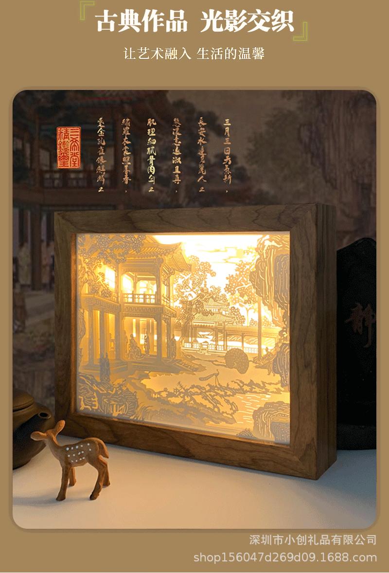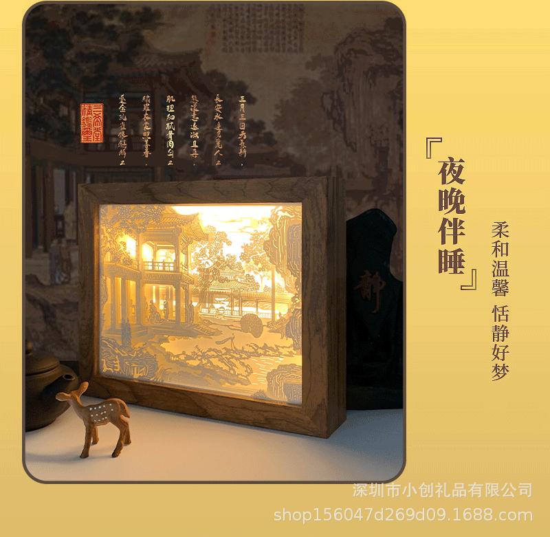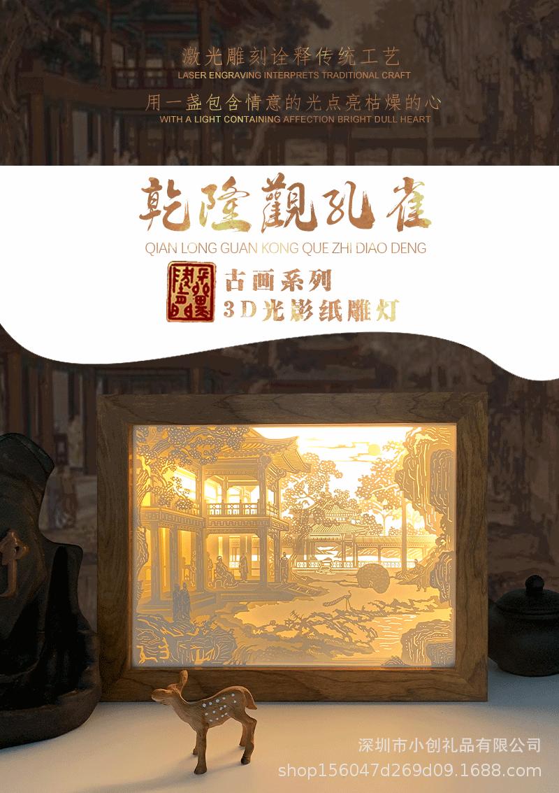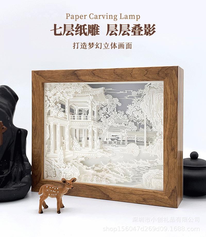 Un Regalo de Envío Directo Lámpara de Mesa Pequeña Creativa Luz Nocturna Adornos de Estilo Antiguo Artesanías Lámpara de Talla de Papel 3D Estéreo de Luz y Sombra