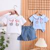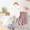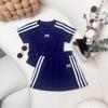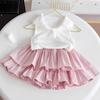 Traje de verano para niñas, elegante, personalizado, de marca de moda coreana, polo sin mangas con solapa y falda plisada