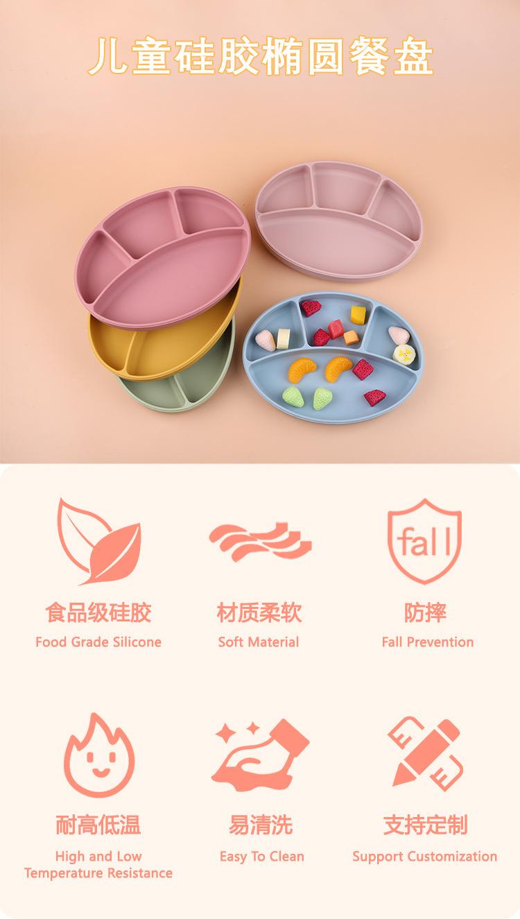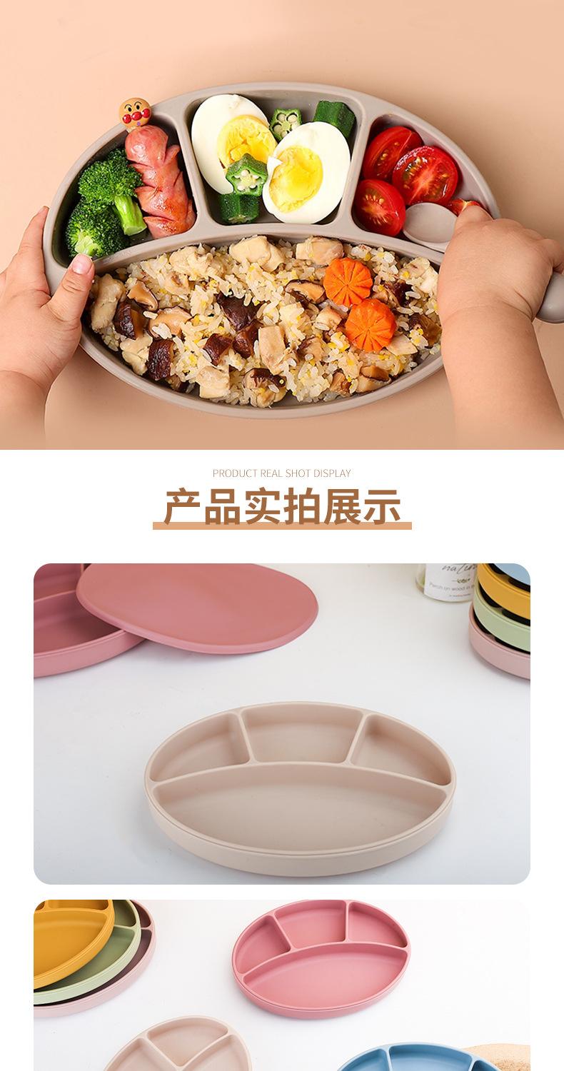 Plato de silicona con compartimentos y ventosa para niños de Corea, grueso, para la cena, vajilla para bebés, hervido y esterilizado, todo en uno.