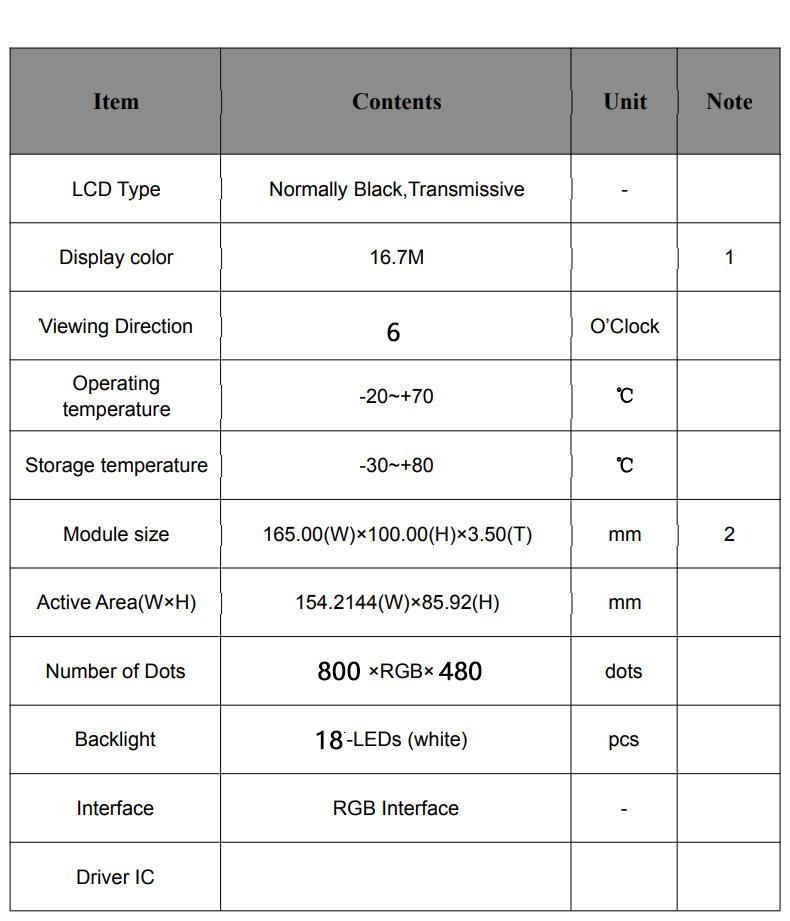 Módulo de pantalla LCD TFT a color paralelo de 5 pulgadas RA8875 con pantalla táctil de 8 bits y 16 bits LMT050DNCWU