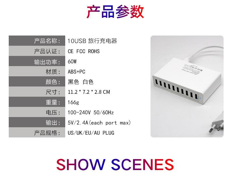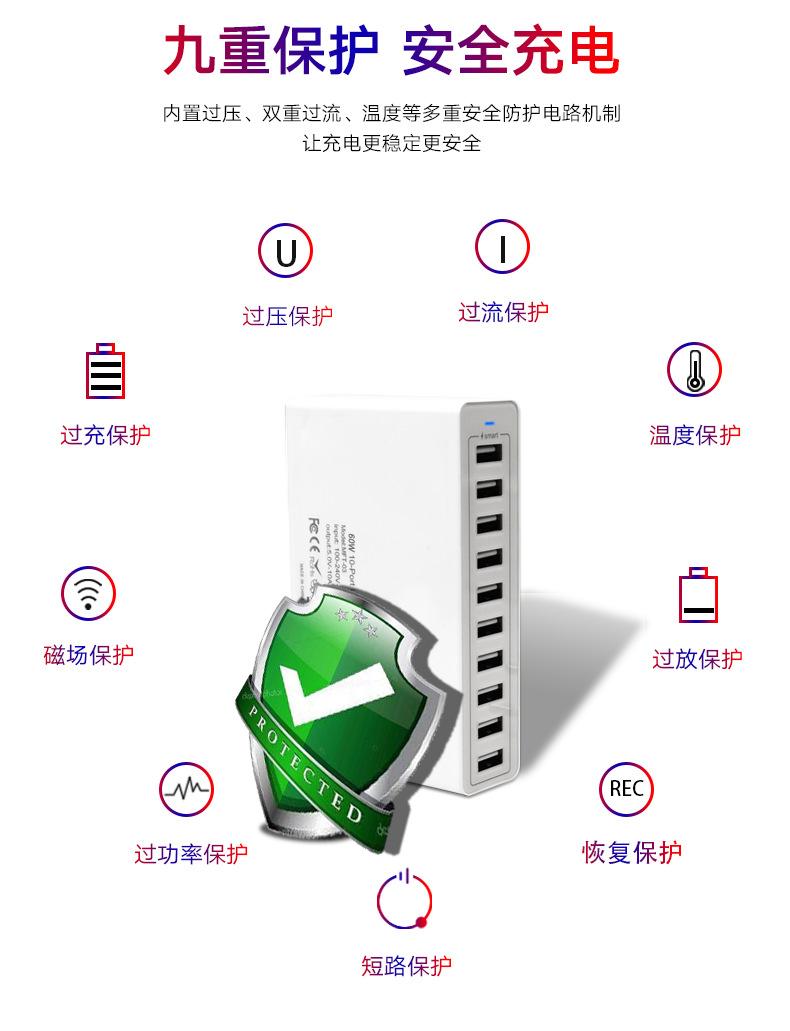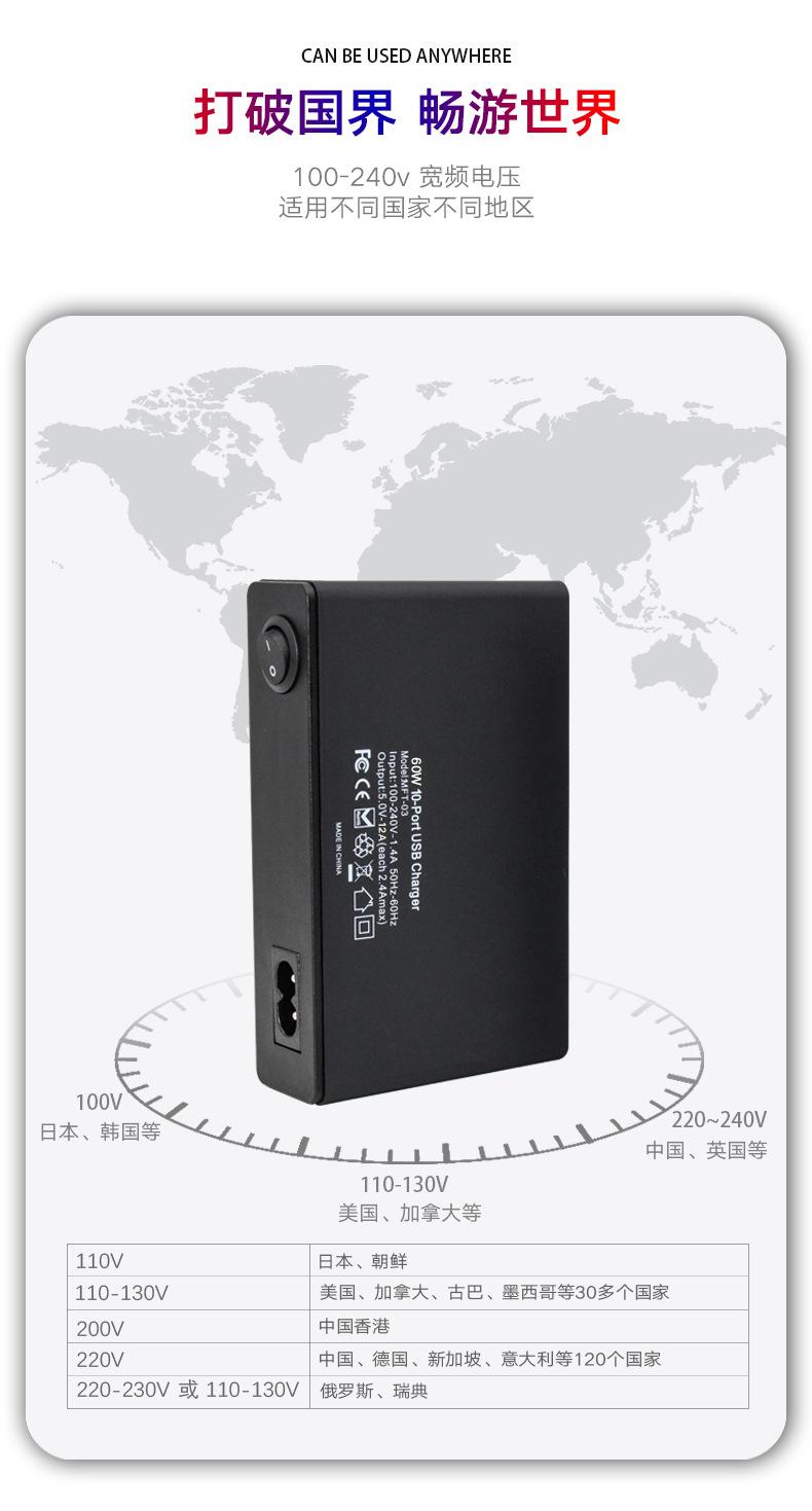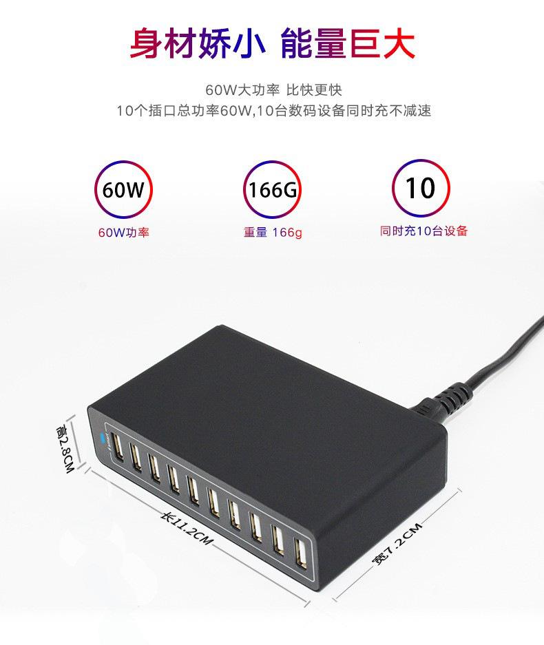 【Cargador USB de 10 puertos de 60 W】