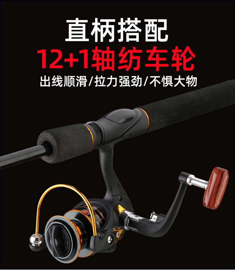 Juego completo de caña de pescar de carbono con señuelo, venta al por mayor, mango de pistola, rueda de gota de agua, rueda giratoria, juego de caña de pescar con señuelo, juego completo