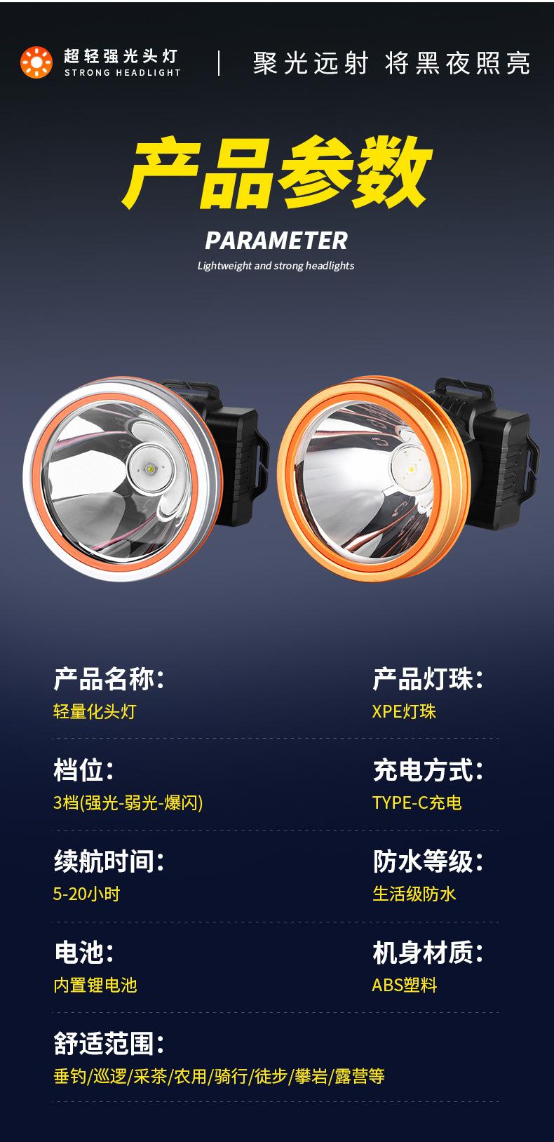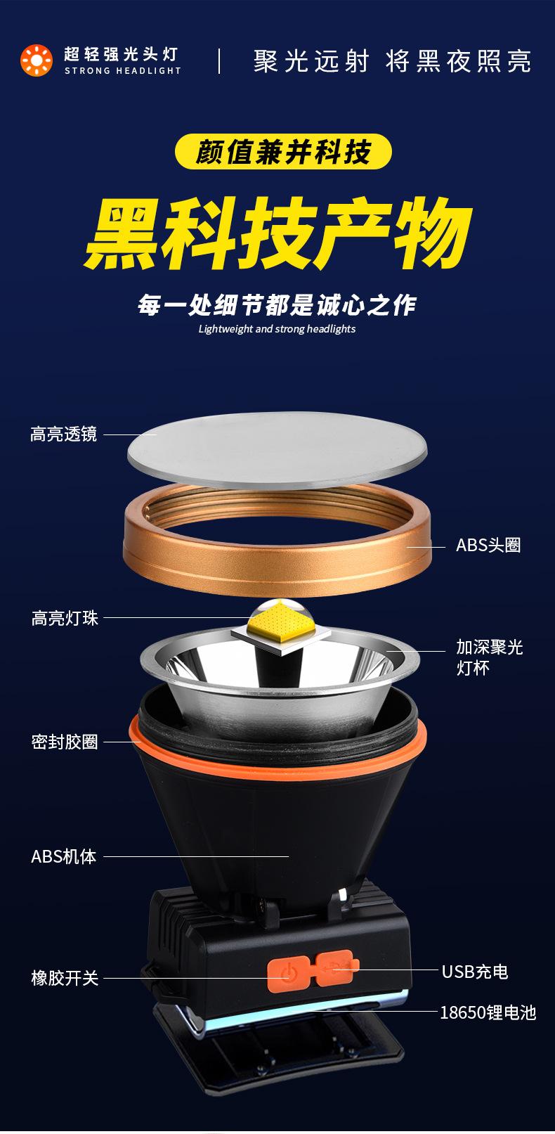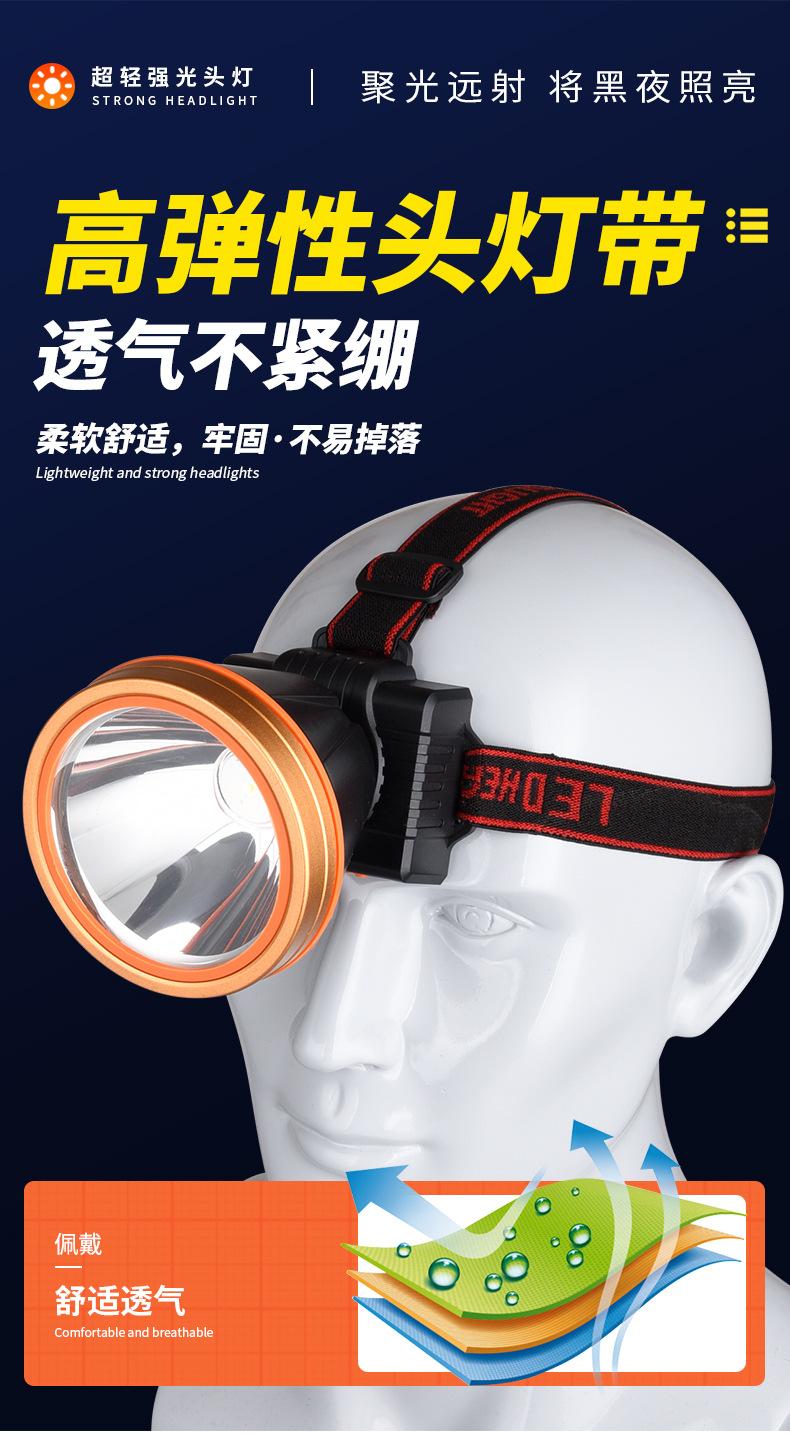 Nuevo Faro LED de Luz Fuerte Luz para Pesca Nocturna al Aire Libre Recargable Batería de Litio Linterna Frontal de Plástico Venta al por Mayor