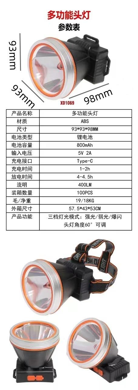 1069 headlights -18650 large capacity color box USB cable, 1069 silver head lamp -18650 large capacity color b...