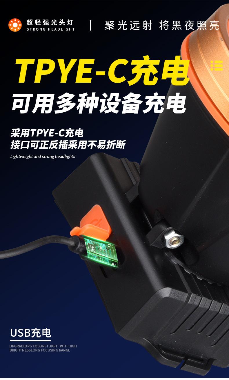 2058-Black Headlight -14500 Small Capacity USB Cable Neutral Box