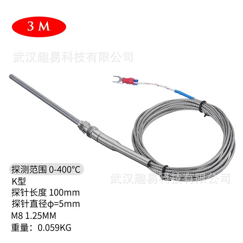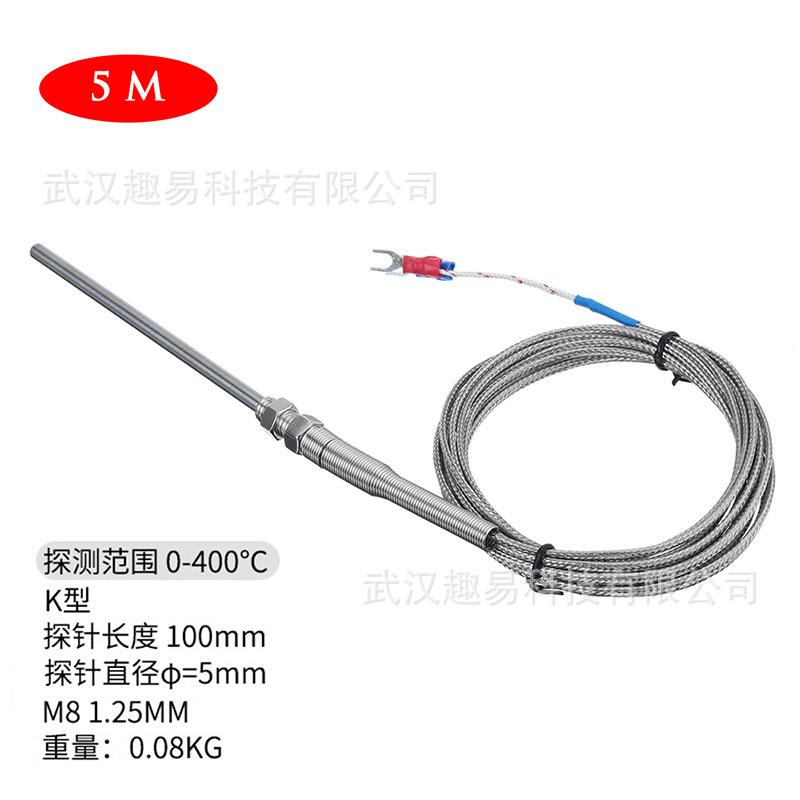 Alambre de acero inoxidable Sonda tipo K Sonda termopar longitud 100mm diámetro 5mm temperatura 0~400 grados Celsius