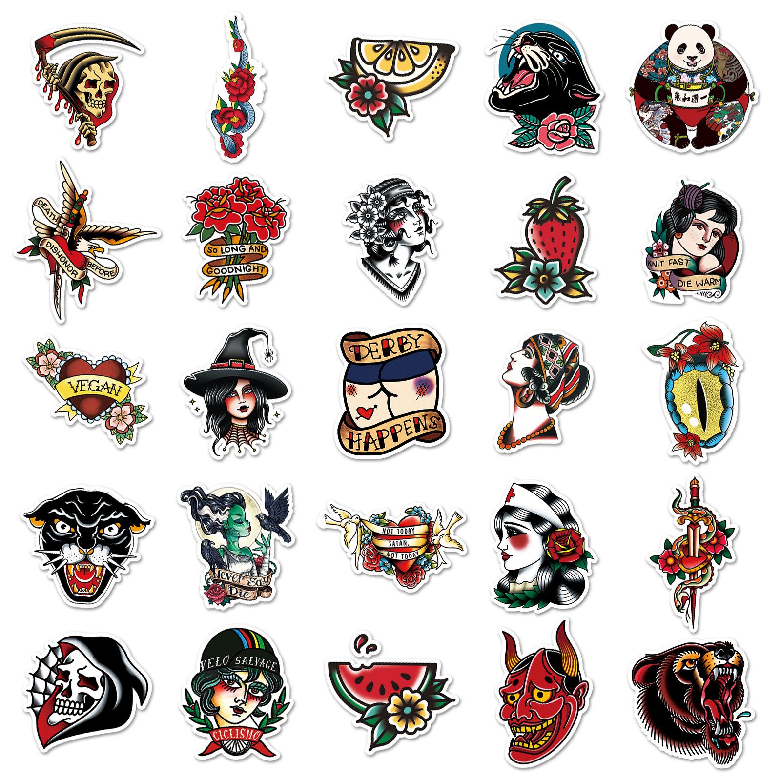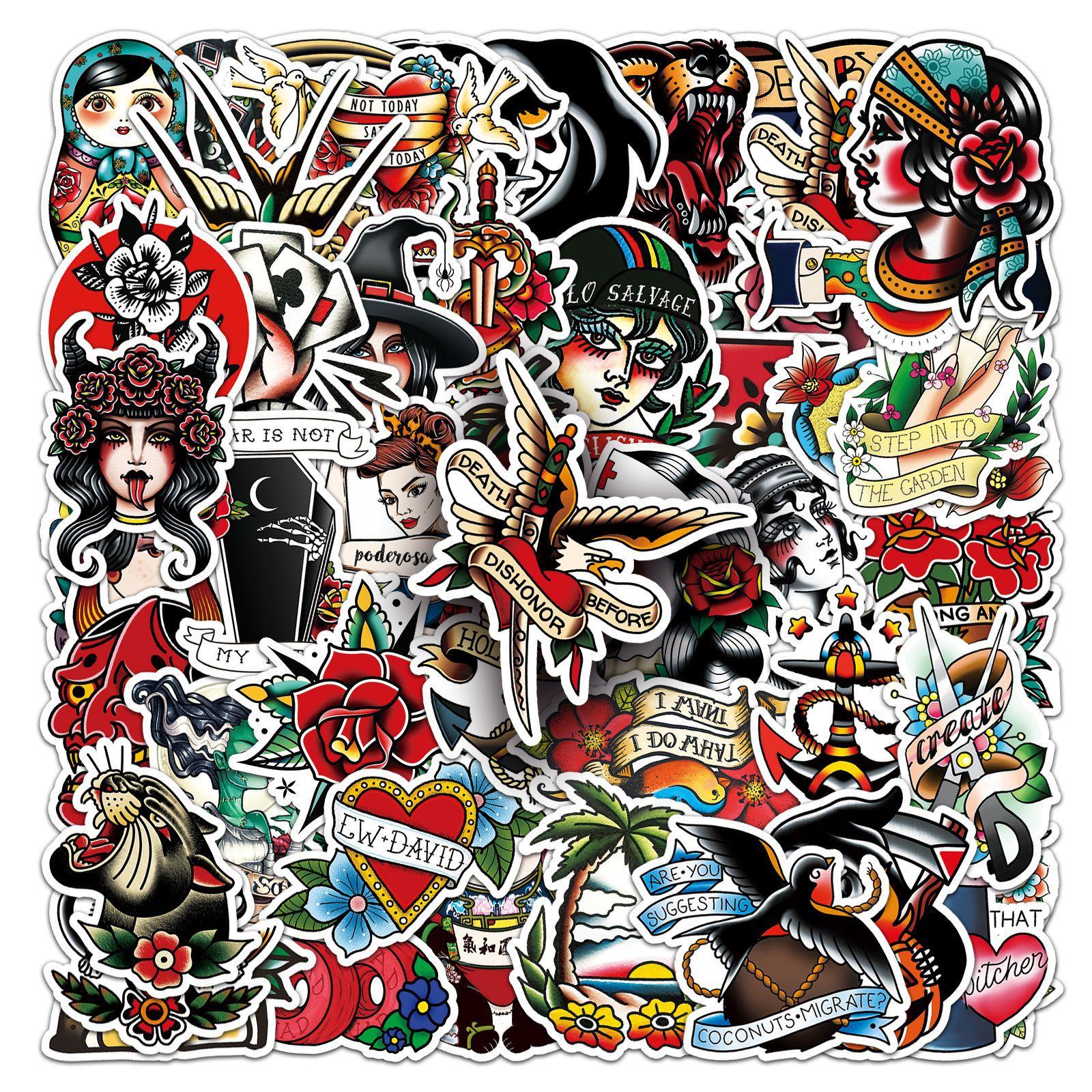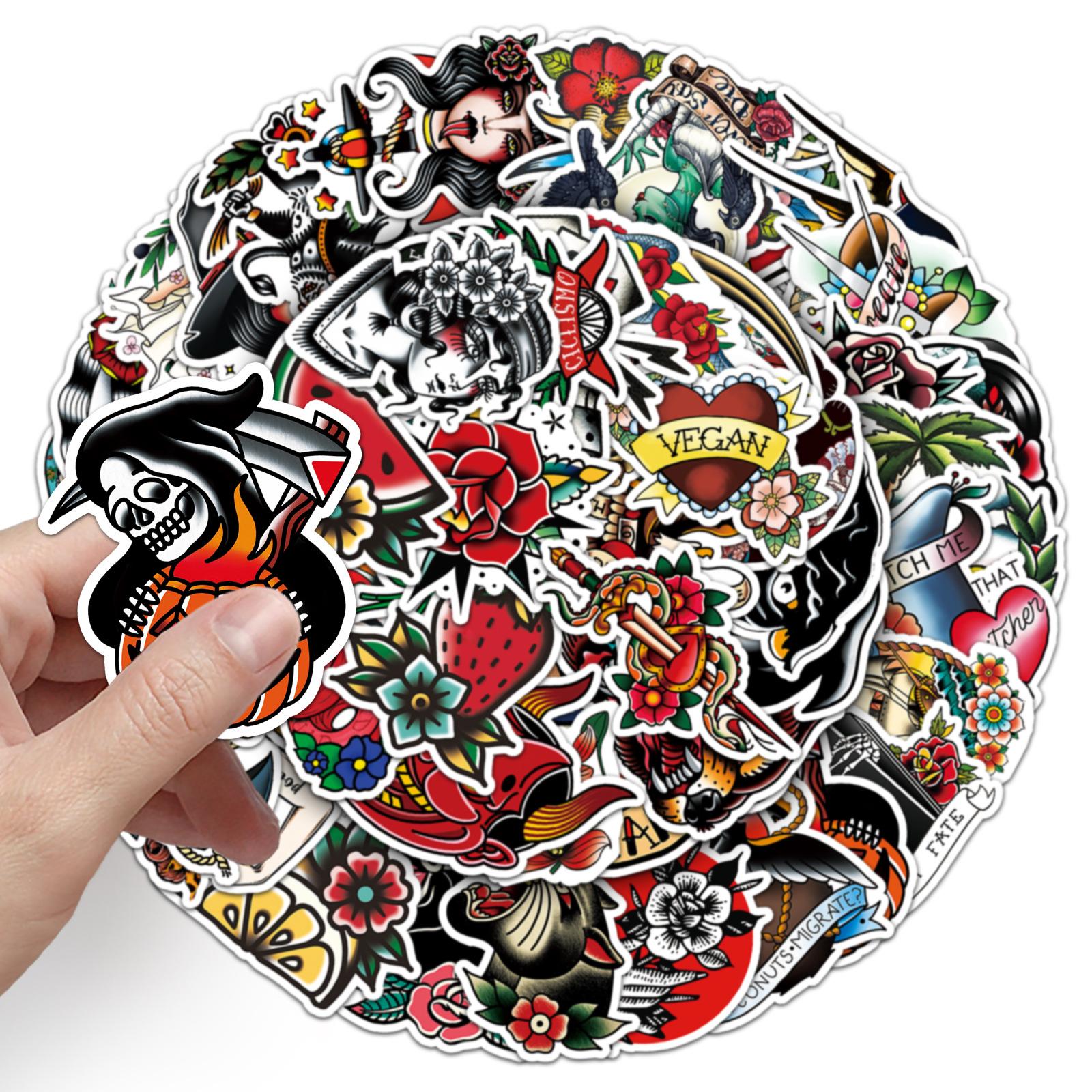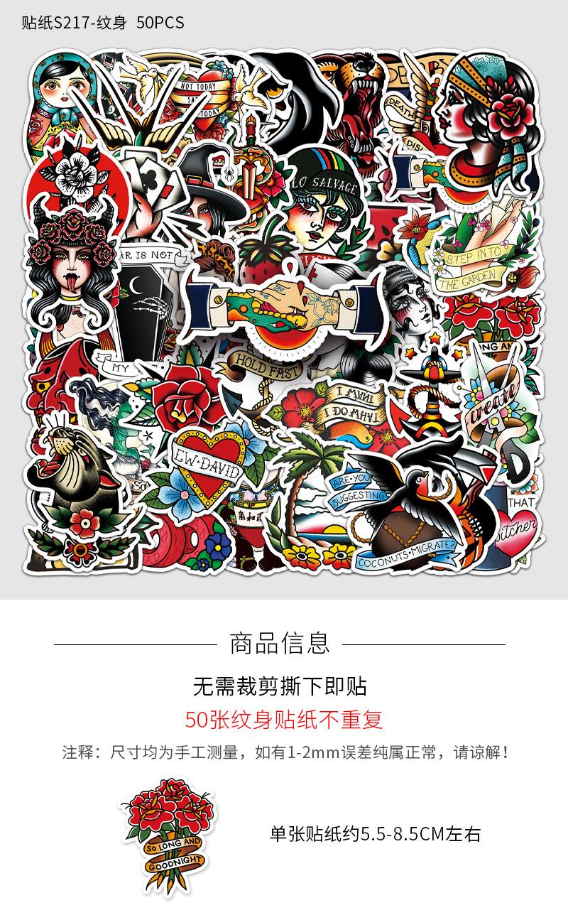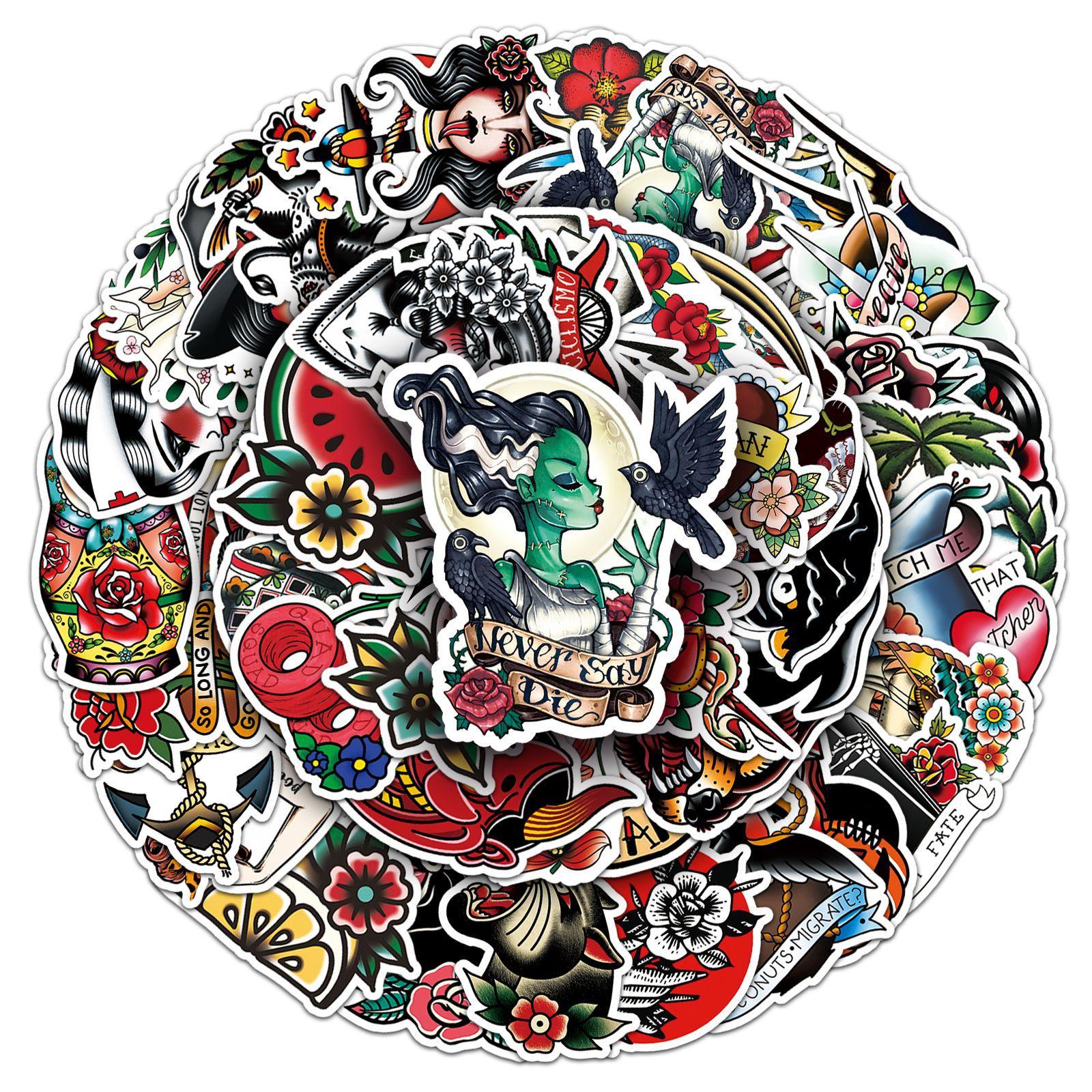 50 pegatinas personalizadas de tatuajes de moda, dibujos animados, grafitis creativos, para portátil, equipaje, decoración de comercio exterior