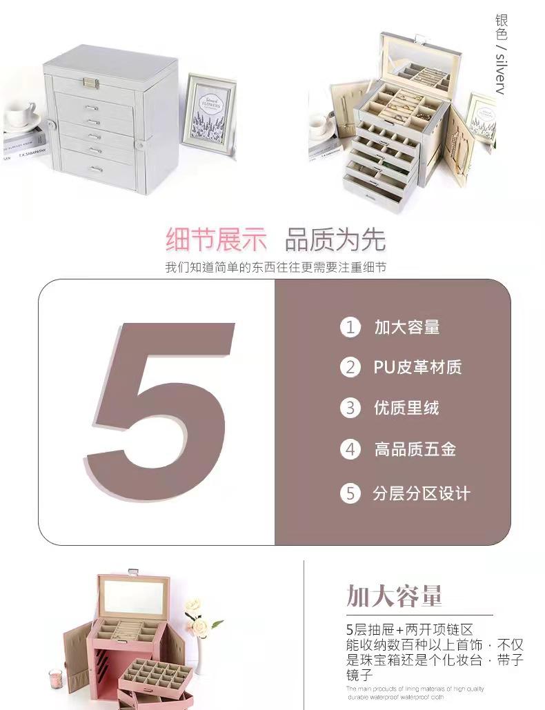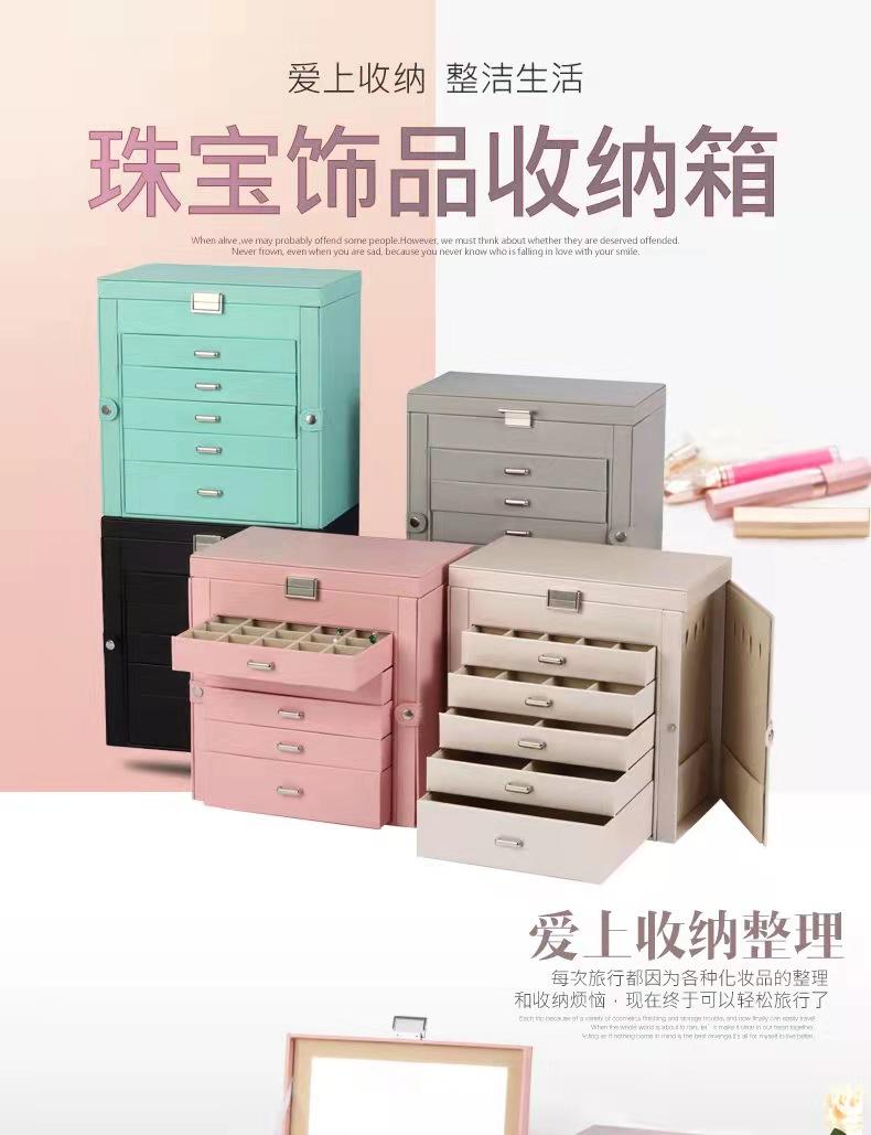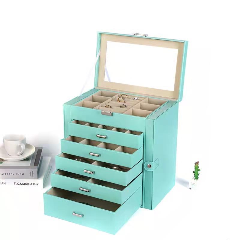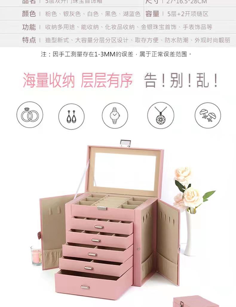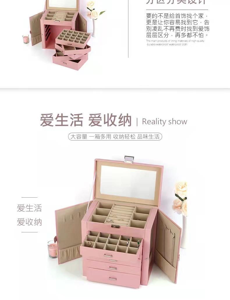 Nuevo joyero con cerradura, exquisito joyero multicapa de gran capacidad, caja de almacenamiento para collares, pendientes, anillos y joyas.