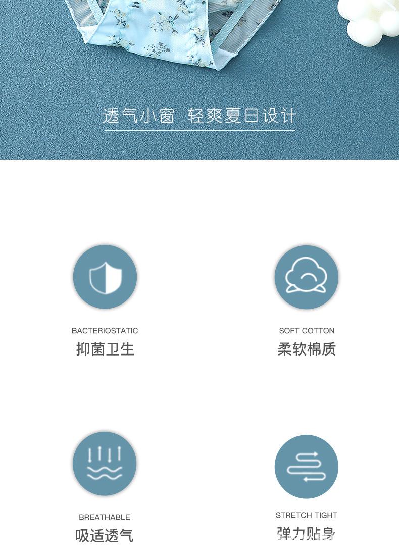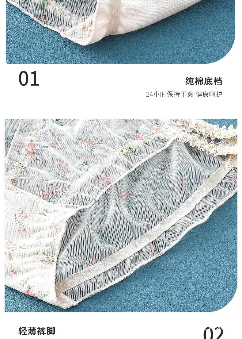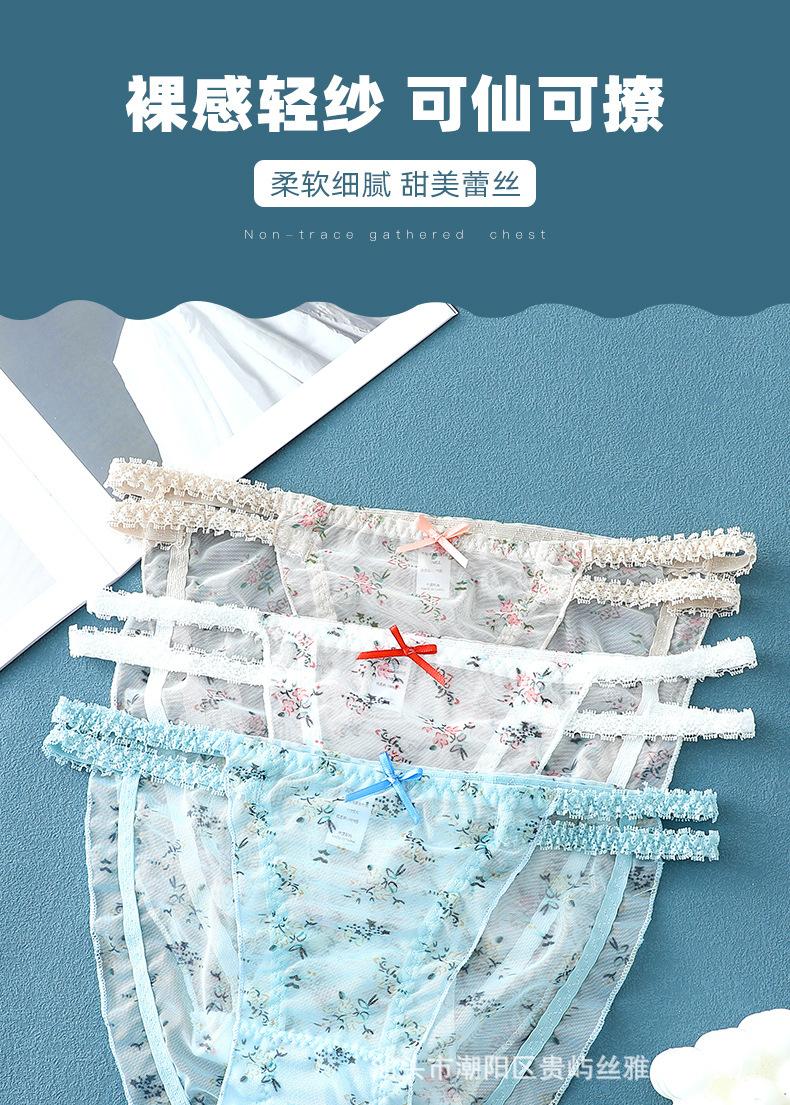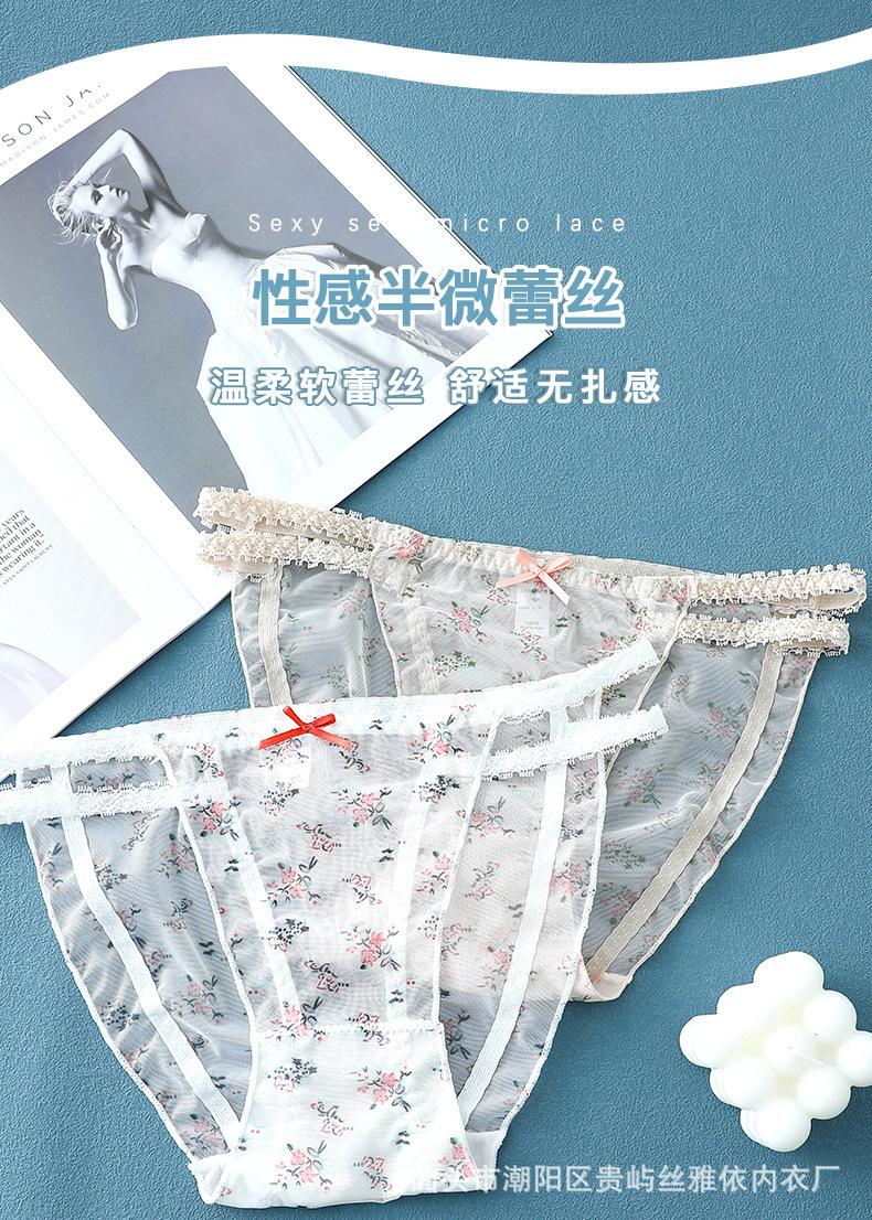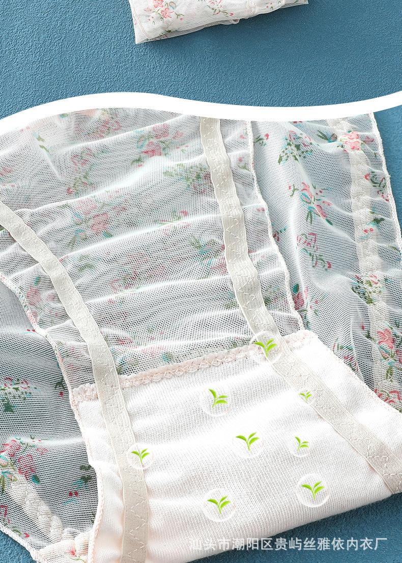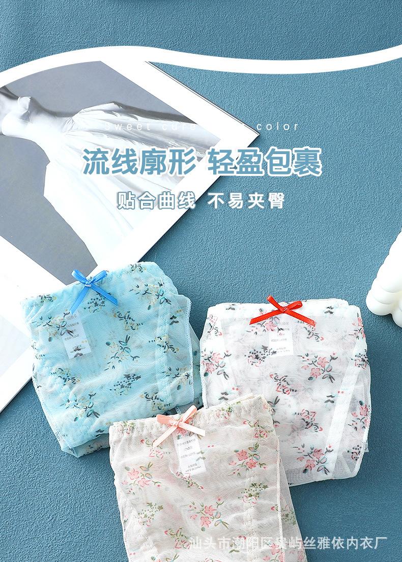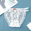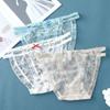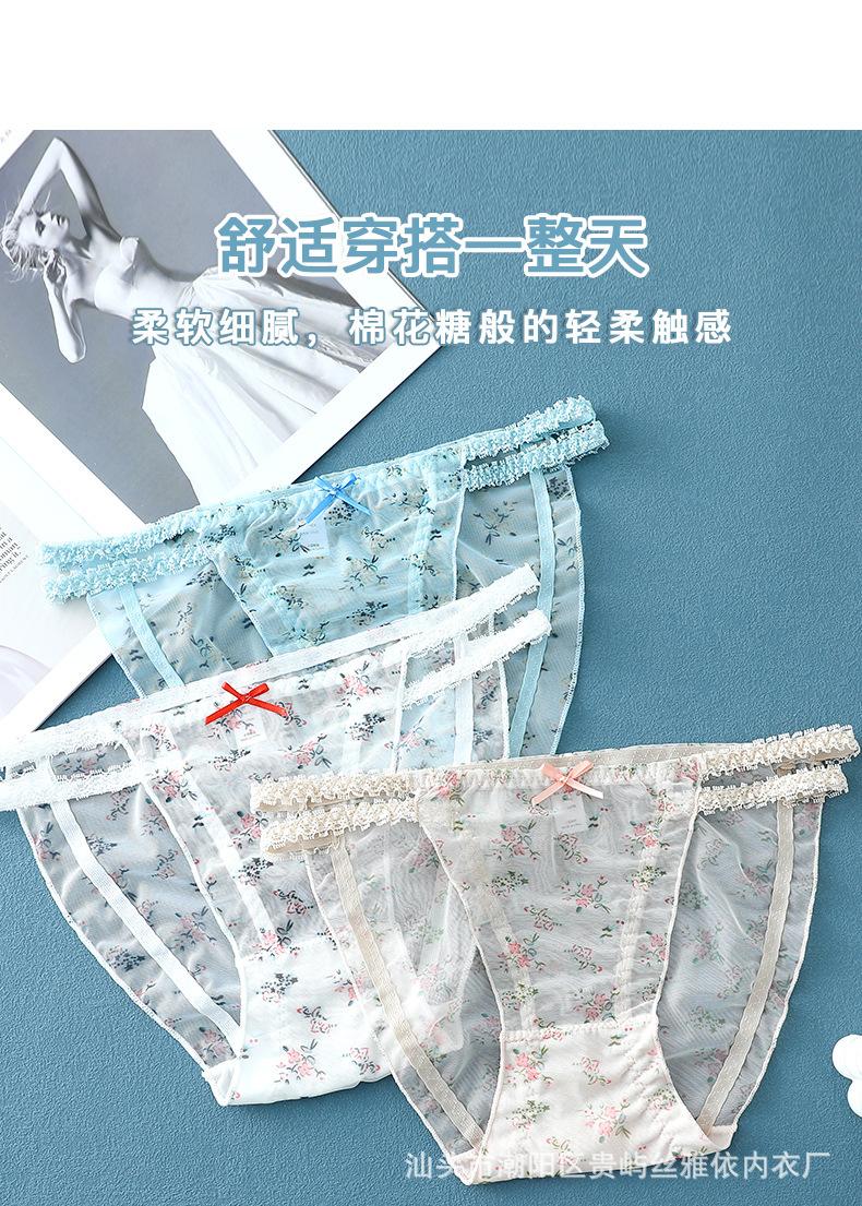 Ropa interior de malla transparente estampada de cintura media sin costuras para mujer, ligera y transpirable, con entrepierna de algodón, calzoncillos sexys con lazo para mujer