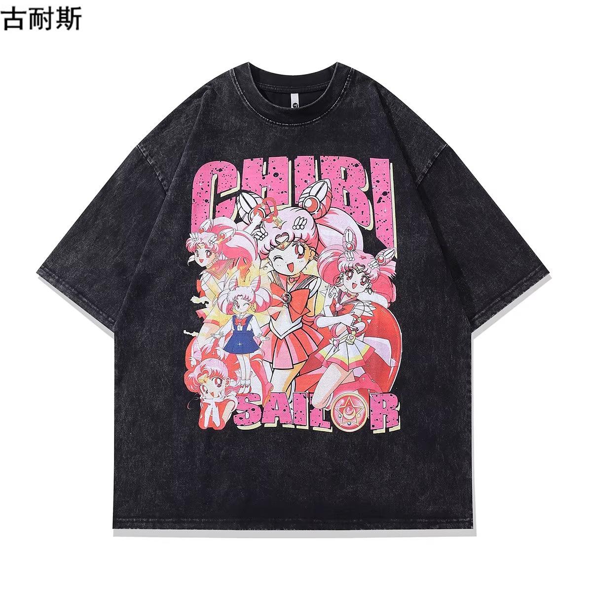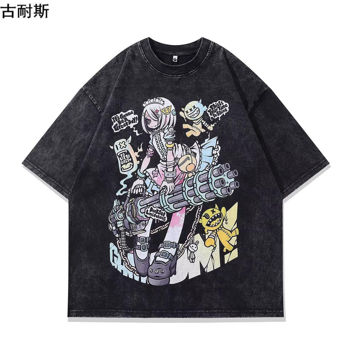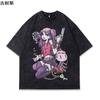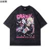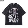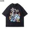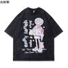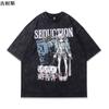 Camiseta de hip hop holgada de manga corta de algodón lavado desgastado vintage con estampado de marca de moda estadounidense al por mayor transfronteriza