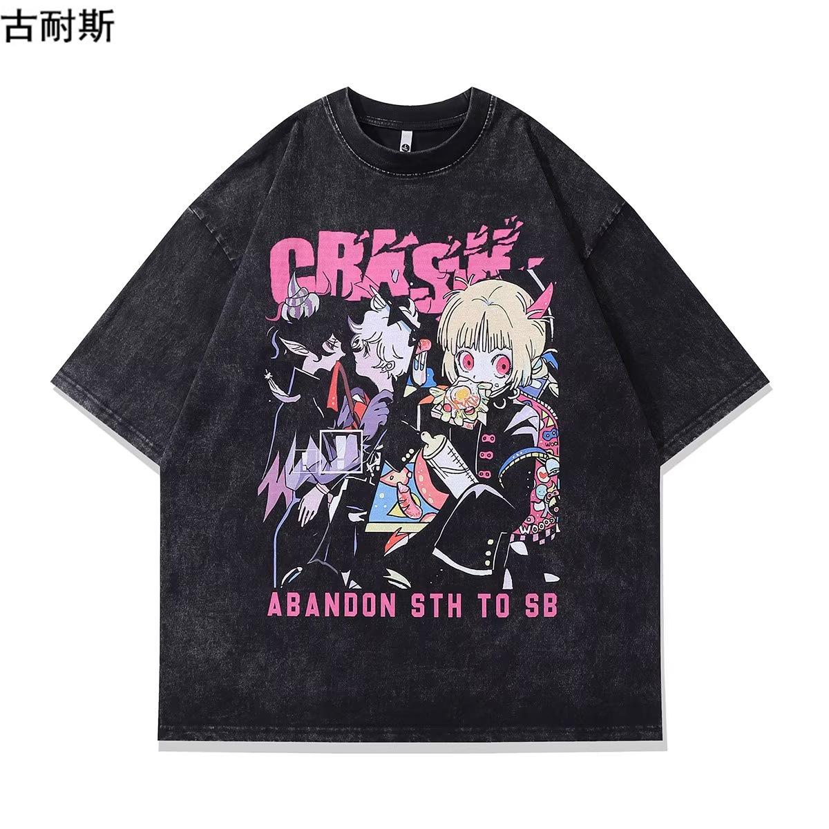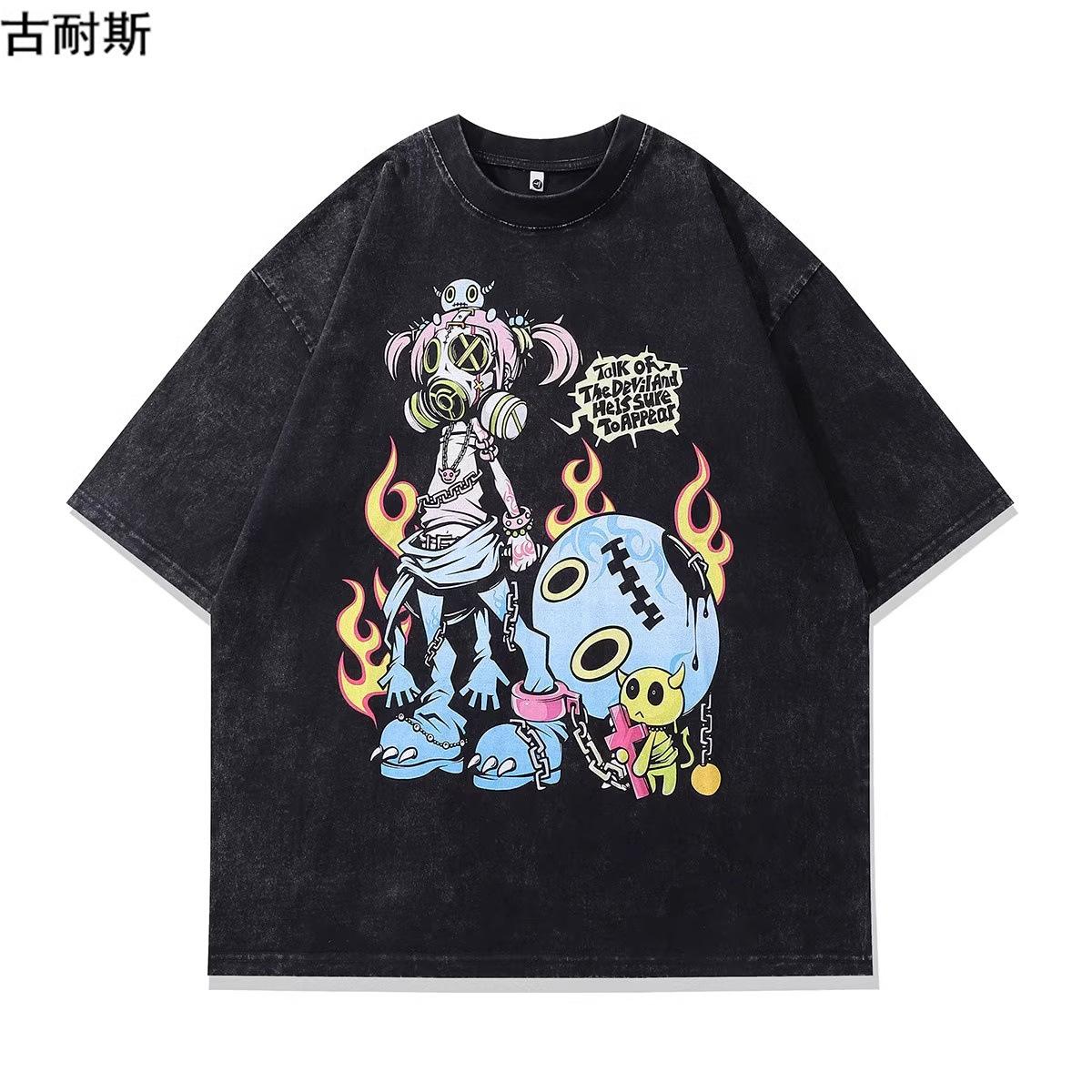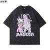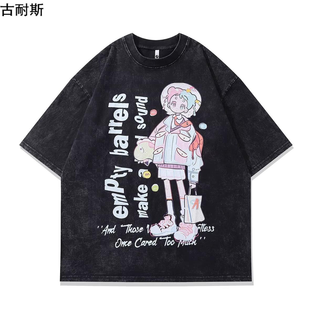 Compra Camiseta de hip hop holgada de manga corta de algodón lavado desgastado vintage con estampado de marca de moda estadounidense al por mayor transfronteriza al por mayor en Joom.pro