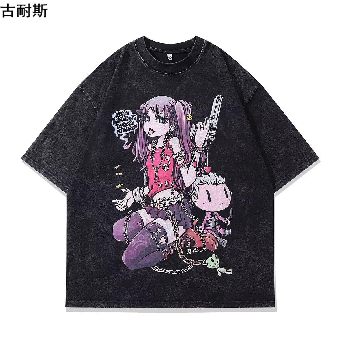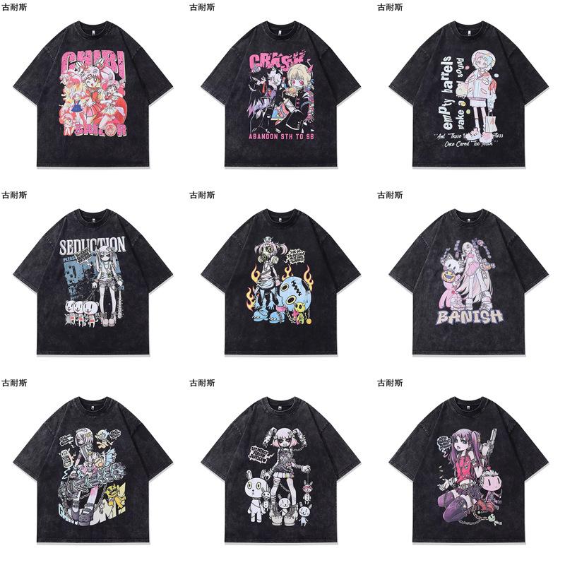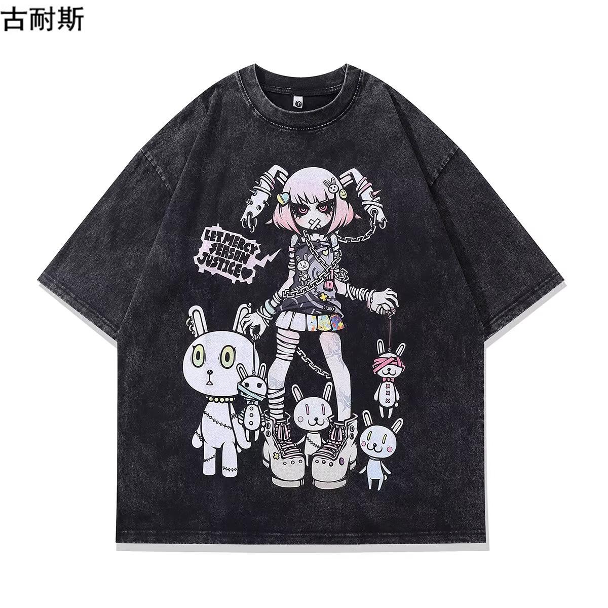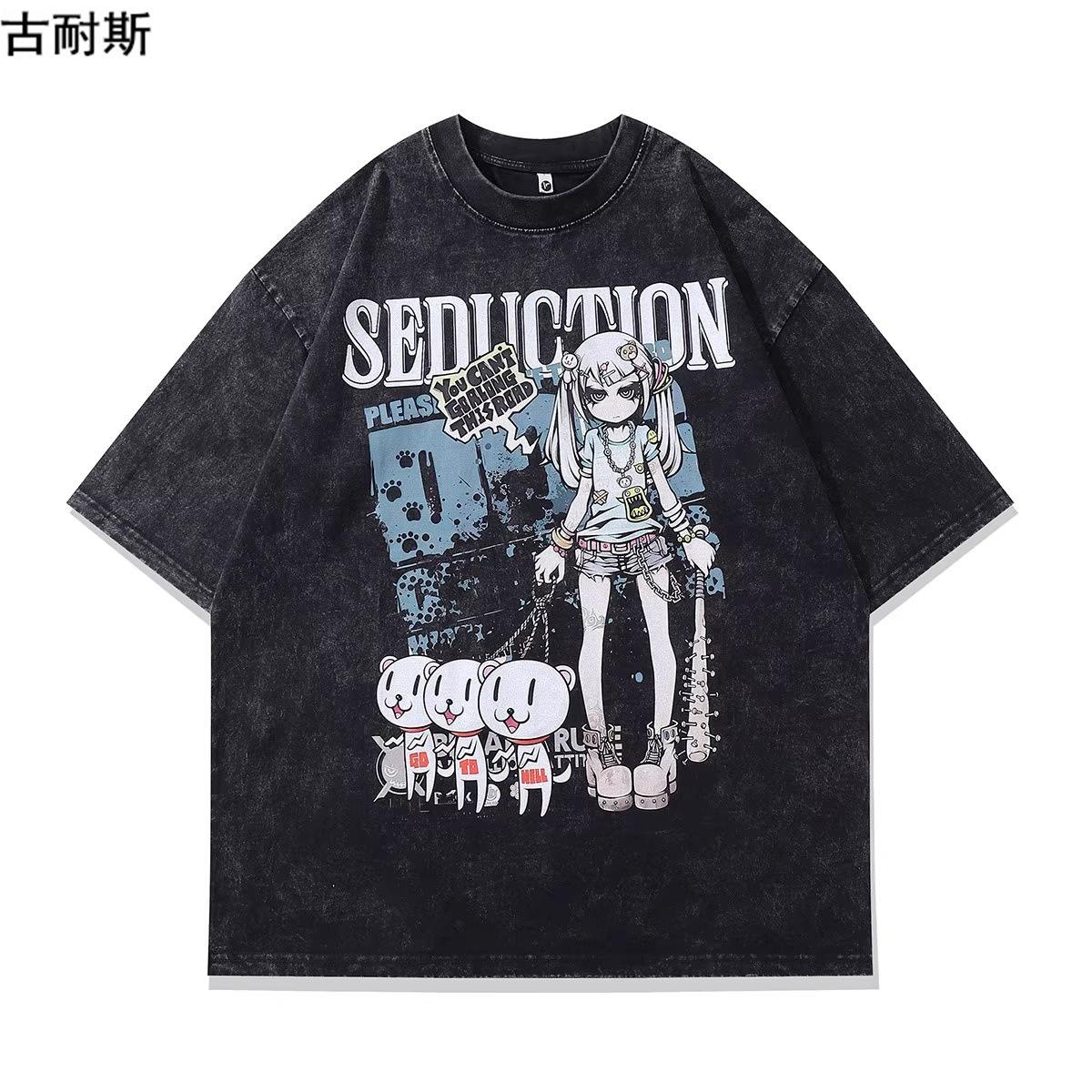 Compra Camiseta de hip hop holgada de manga corta de algodón lavado desgastado vintage con estampado de marca de moda estadounidense al por mayor transfronteriza al por mayor en Joom.pro
