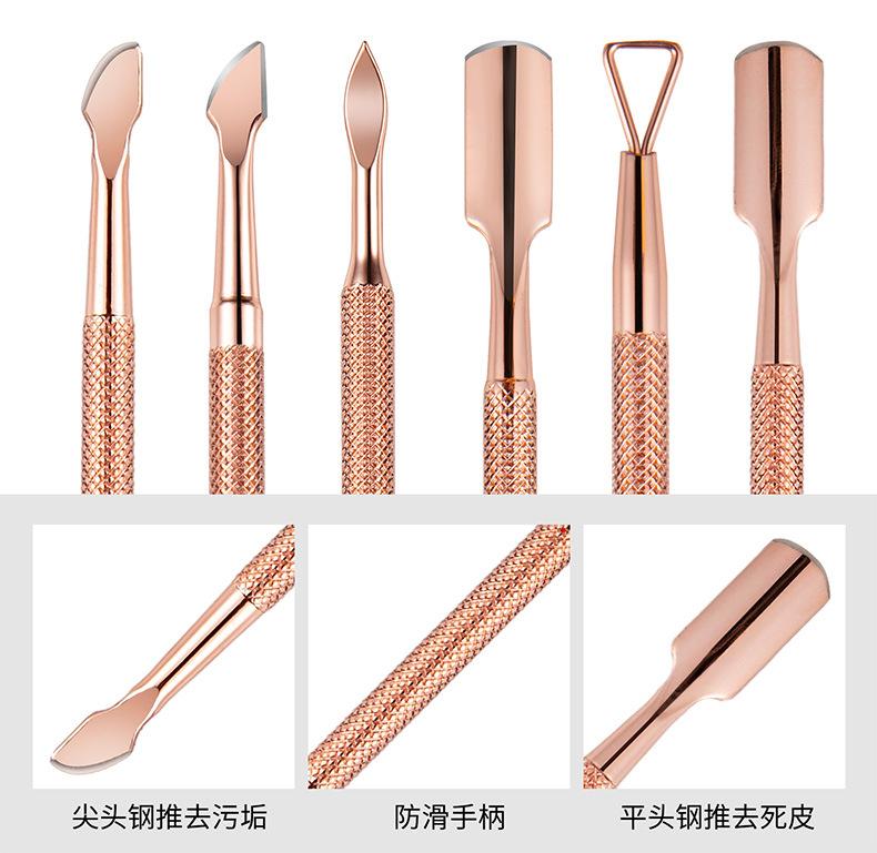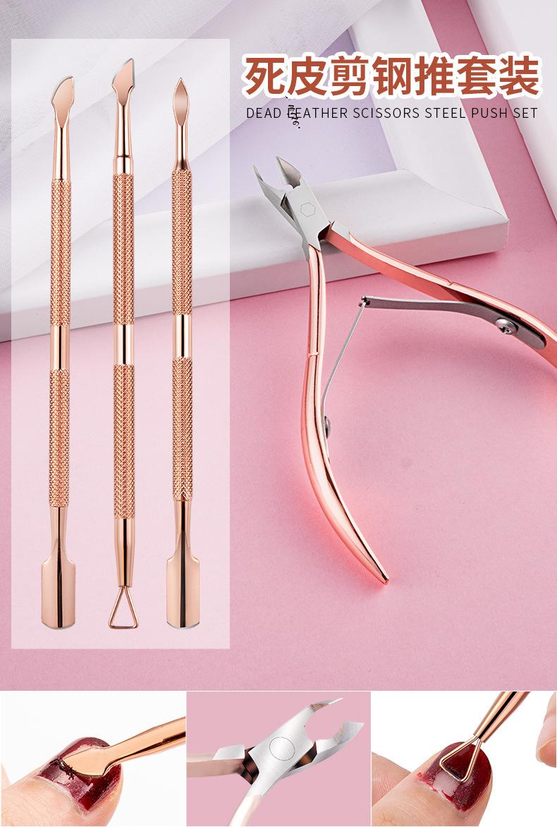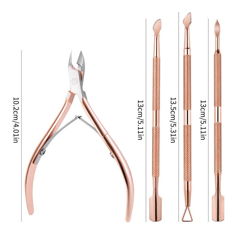 Juego de Tijeras de Acero Inoxidable de Fábrica para Piel Muerta, Alicates Dorados para Piel Muerta, Juego de Herramientas de Manicura para Recorte de Uñas de Acero de Doble Extremo