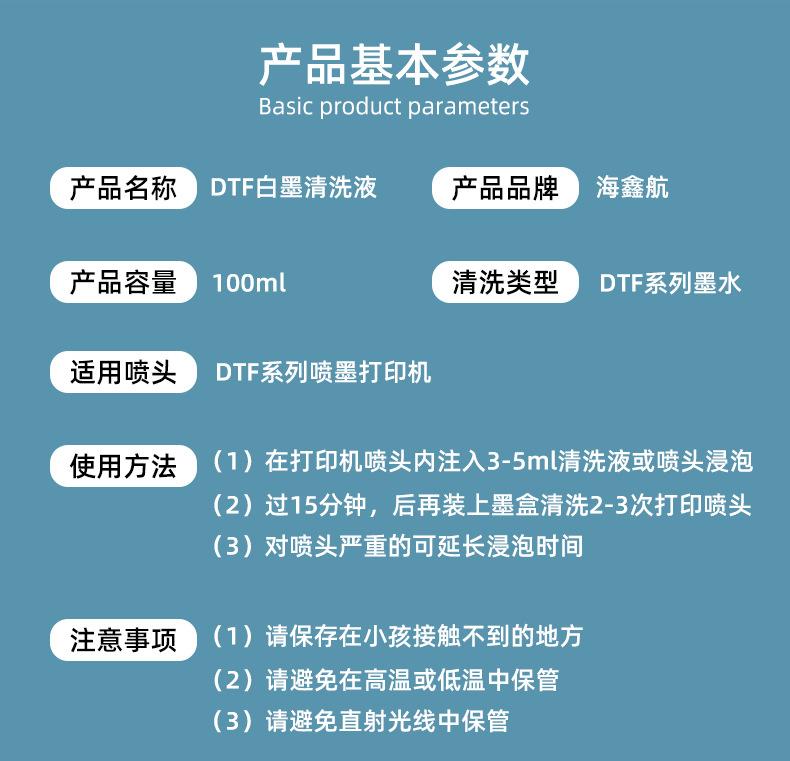 Boquilla de impresora de transferencia de calor de tinta blanca DTF, solución de limpieza especial a base de agua azul para bloquear y dragar agentes fuertes