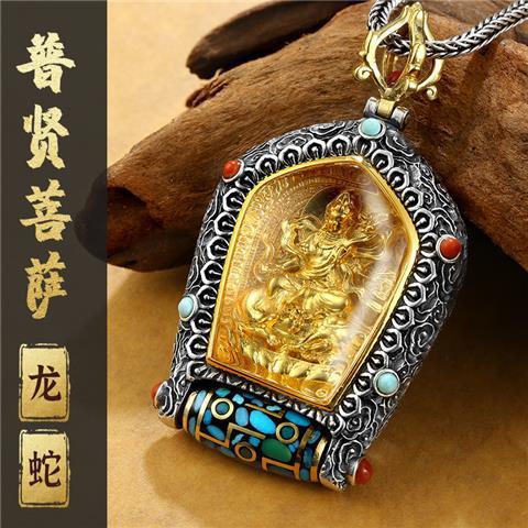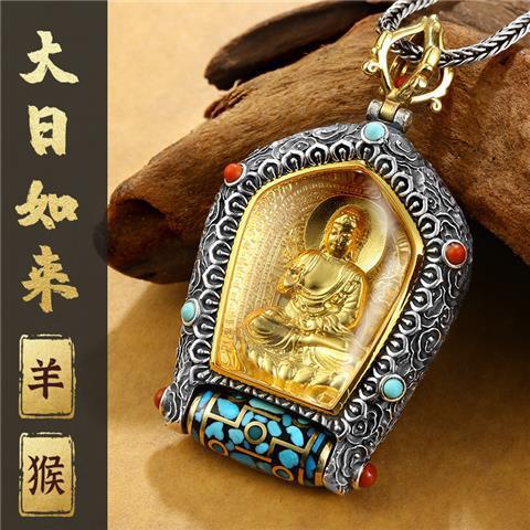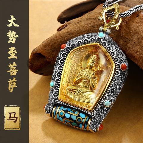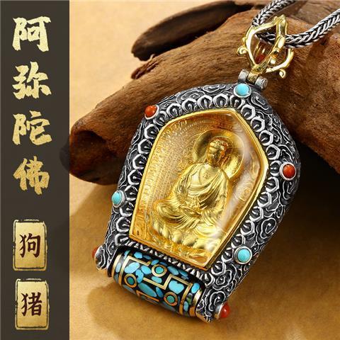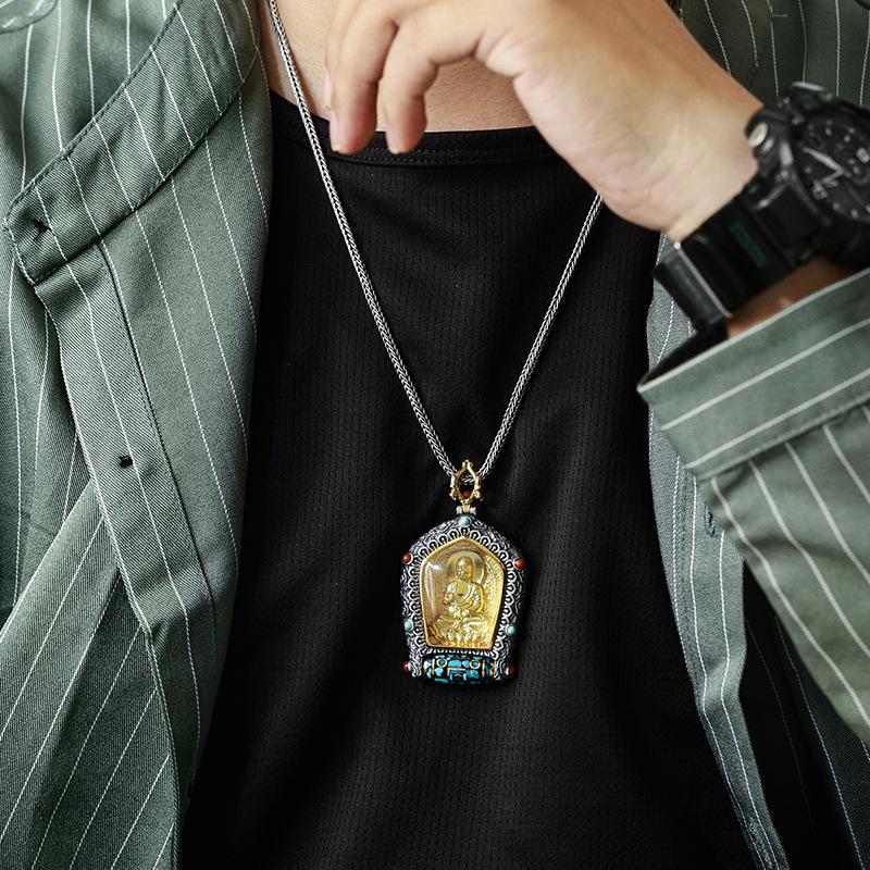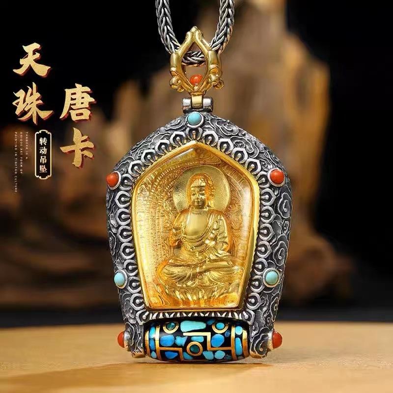 El santo patrón del Emperador de los Diez Mil Budas, Xiangyun Benmingfo, gira el colgante Thangka de perla masculino amarillo Dios de la riqueza collar de madre verde femenino