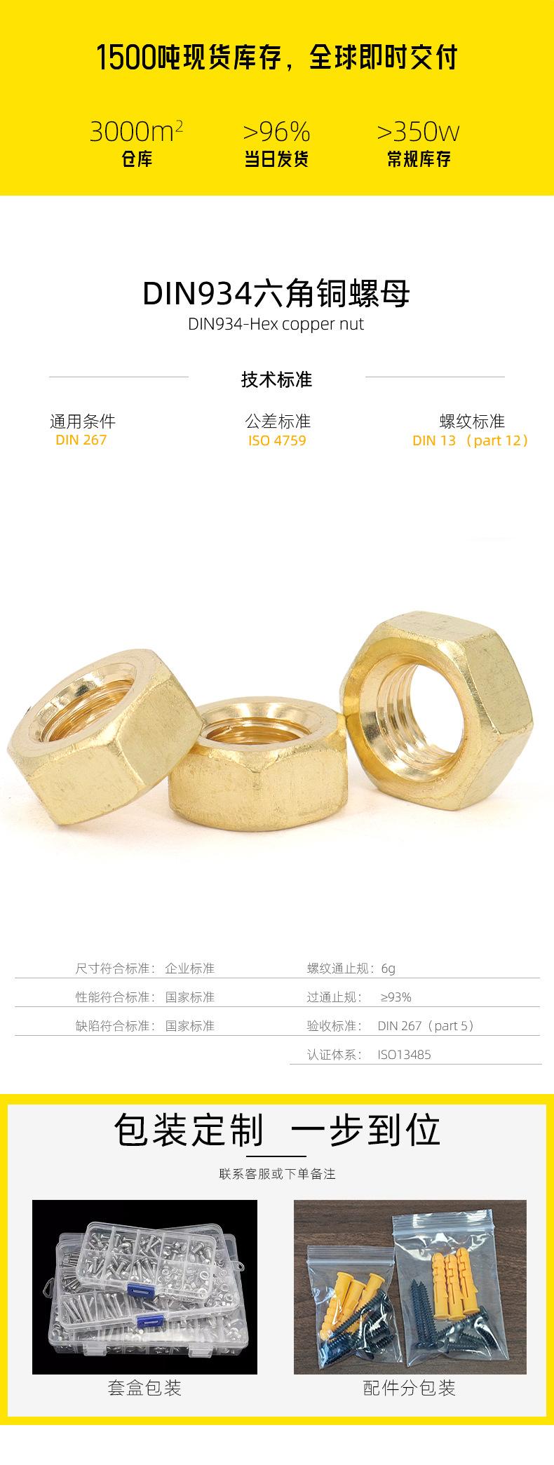 Tuerca Hexagonal Externa H62 Din934 Tuerca de Latón Tapa de Perno Hexagonal de Cobre M2M3M4M5M6M8M10M20
