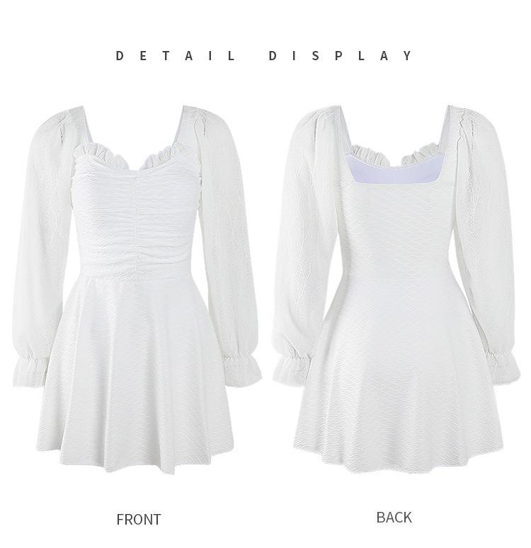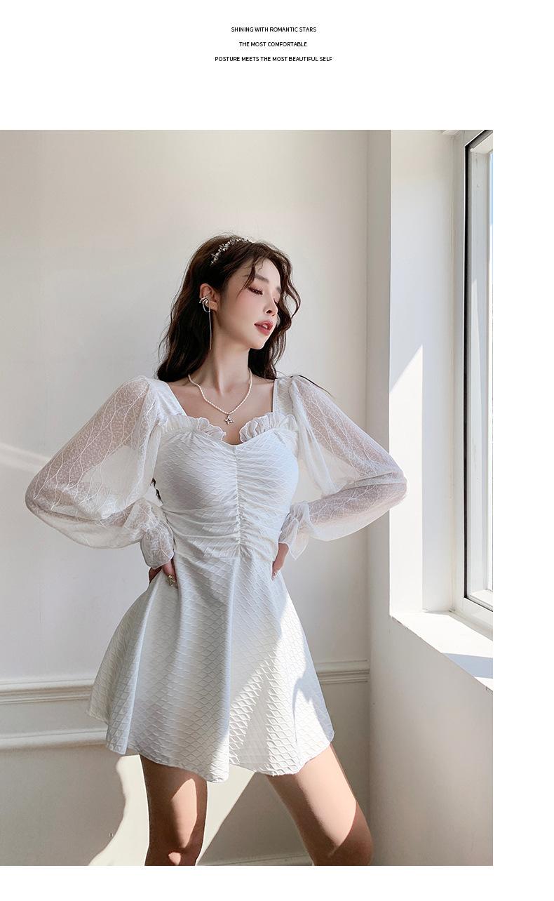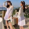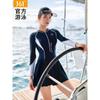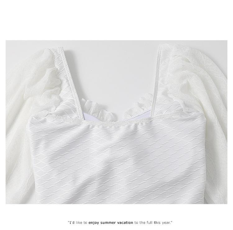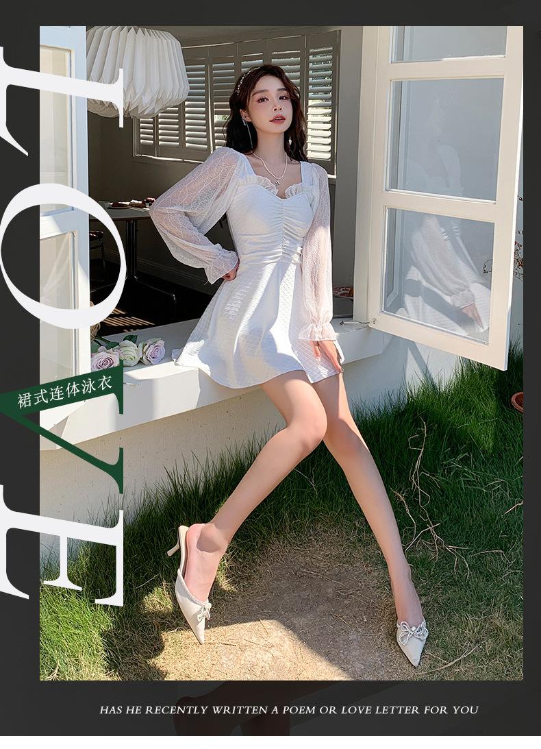 Traje de Baño de Manga Larga para Mujer Verano 2025 Nuevo Traje de Baño Conservador de Una Pieza Estilo Falda Cubre Vientre Adelgazante Look Moda Aguas Termales Traje de Baño Color Puro
