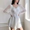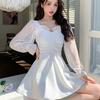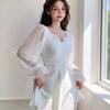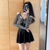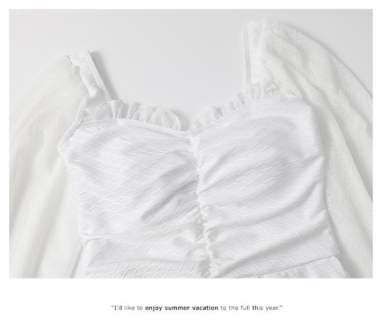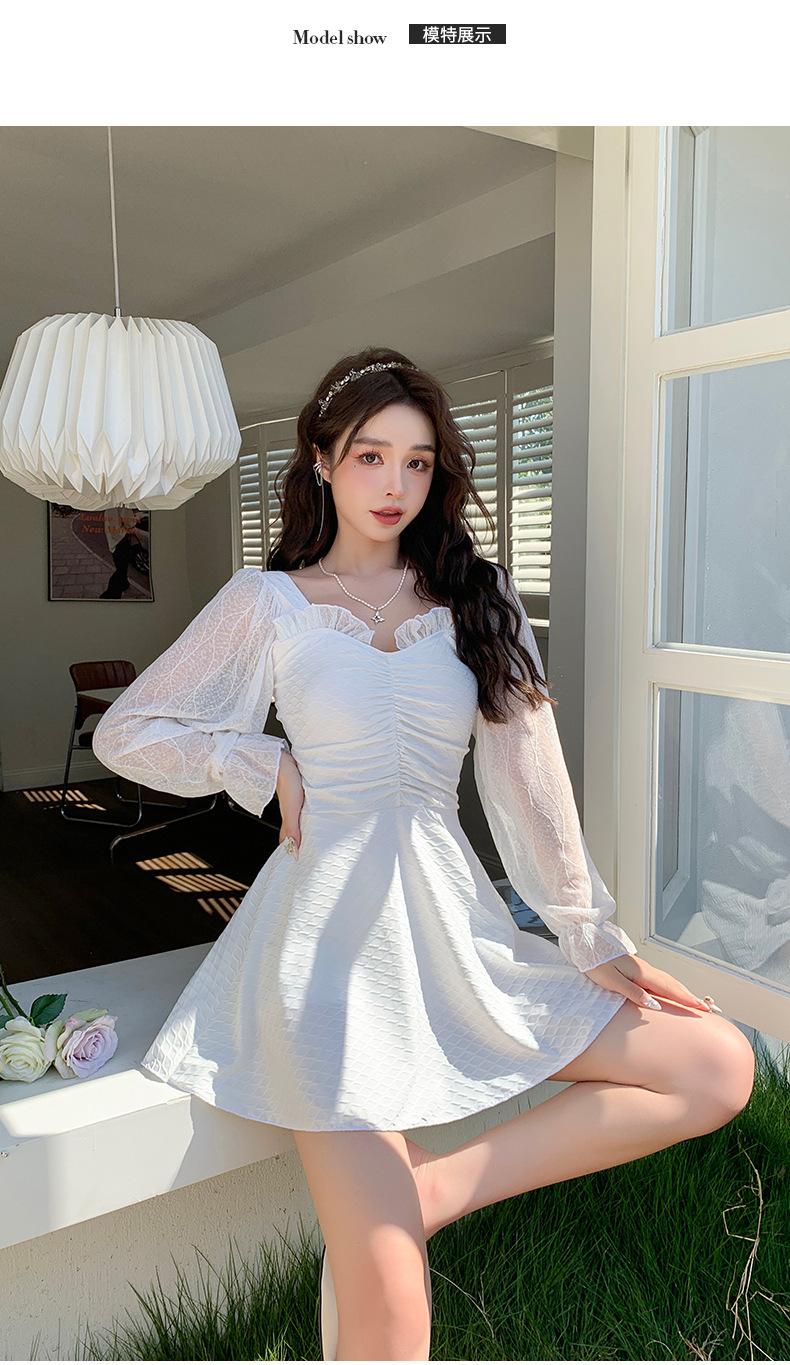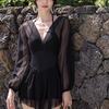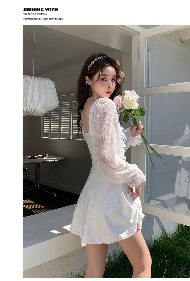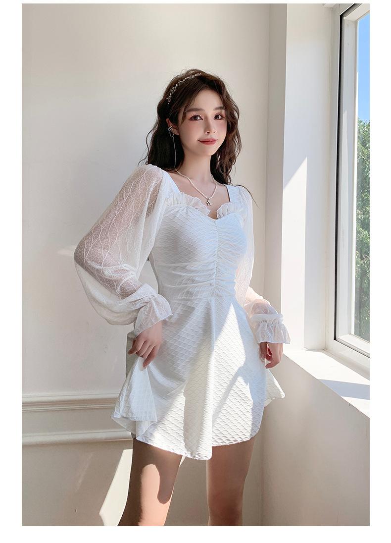 Traje de Baño de Manga Larga para Mujer Verano 2025 Nuevo Traje de Baño Conservador de Una Pieza Estilo Falda Cubre Vientre Adelgazante Look Moda Aguas Termales Traje de Baño Color Puro