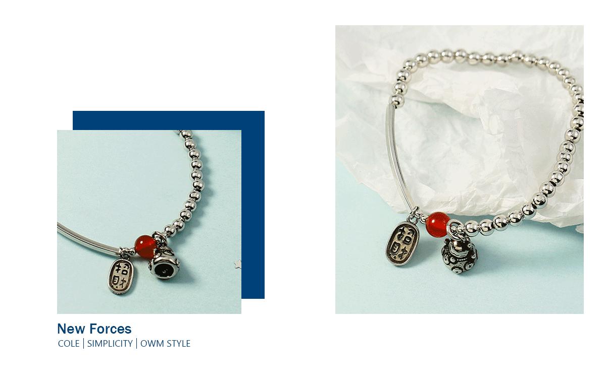 Compra Pulsera de ágata roja con cuentas redondas de gato de la suerte, linda y dulce pulsera elástica, diseño de nicho de celebridades de Internet, pulsera para niña al por mayor en Joom.pro