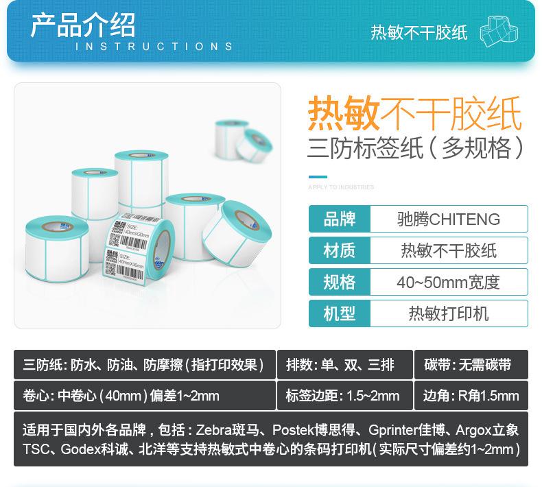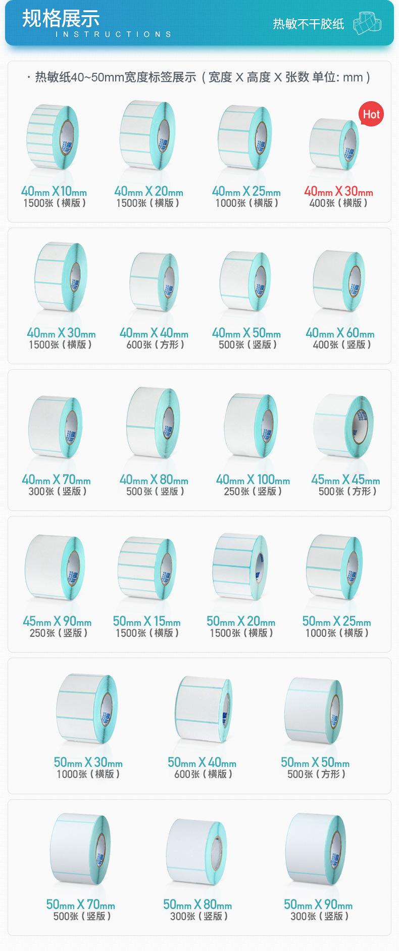 Papel térmico de 40 a 50 etiquetas autoadhesivas de ancho, papel para impresión de etiquetas, papel de código de barras, etiqueta de precio térmica en blanco