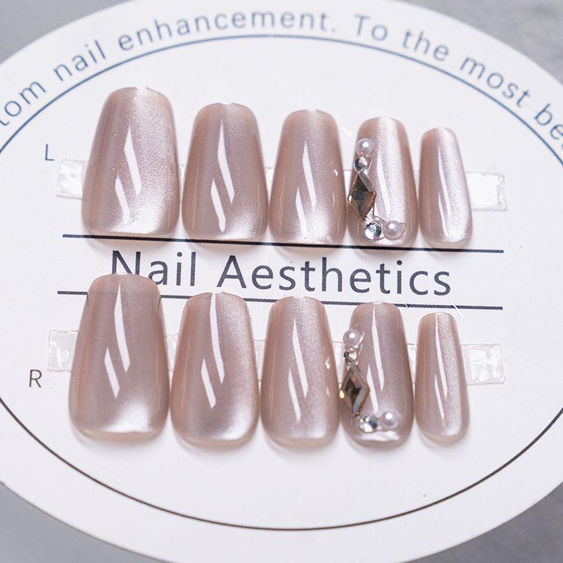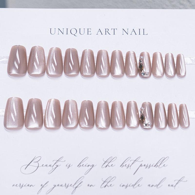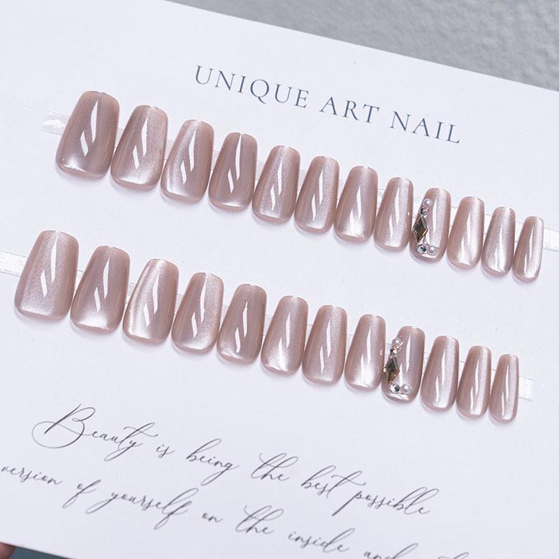 Parche de uñas con diseño de ojo de gato, de moda, blanco, con luz de luna y diamantes, para uñas removibles, producto terminado en blanco al por mayor