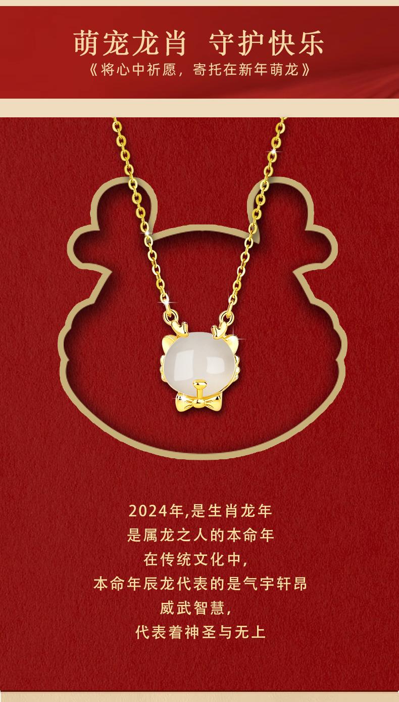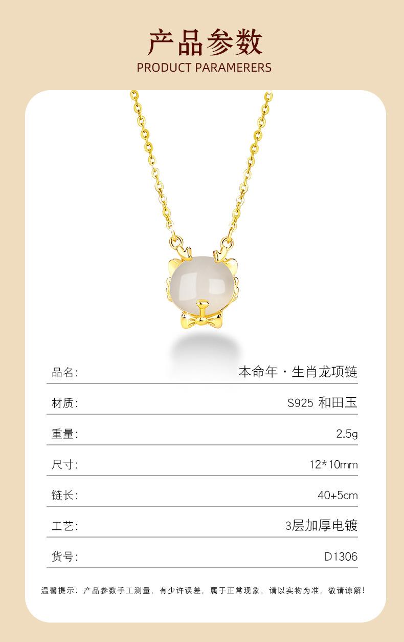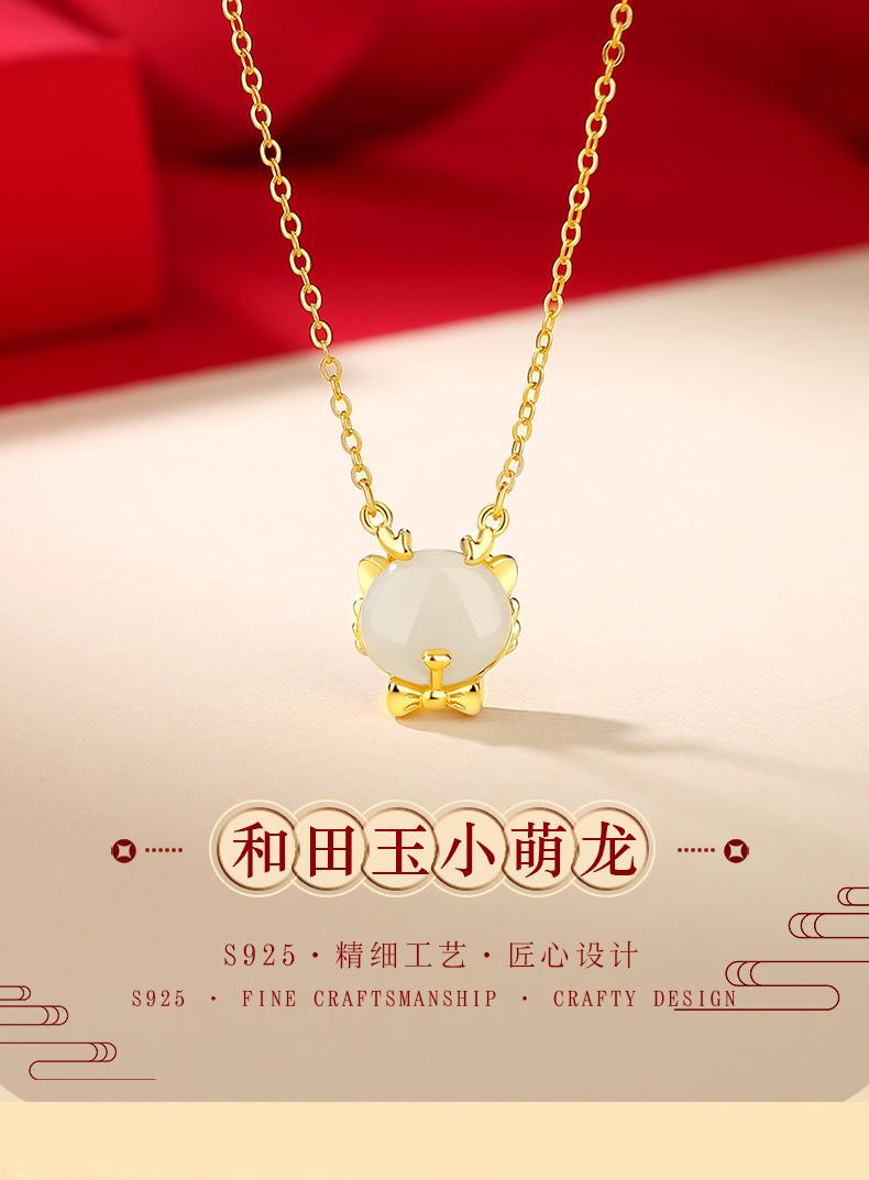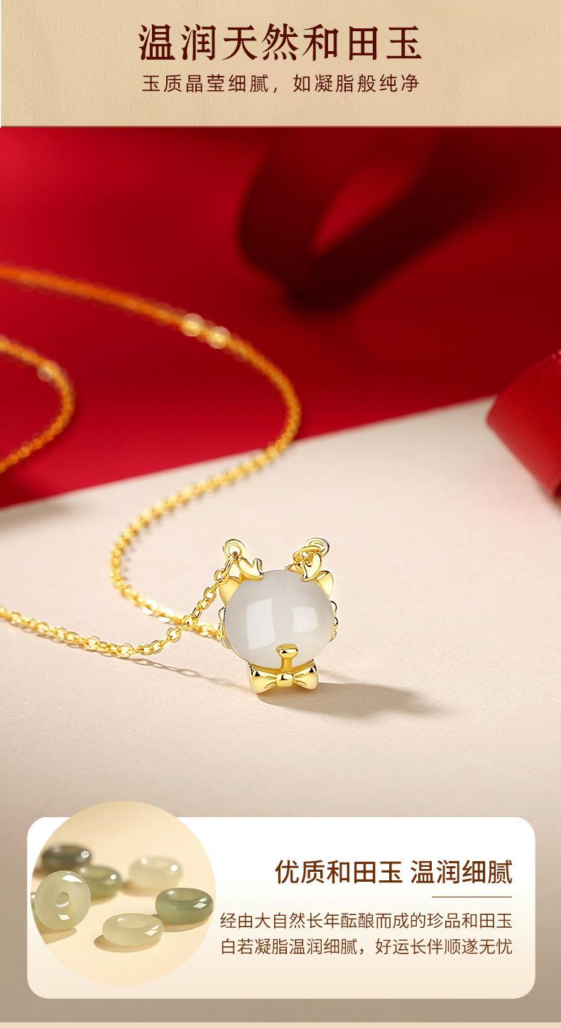 Lindo collar de jade hetiano de plata esterlina 925 con dragón, cadena de clavícula con lazo del zodiaco versátil a la moda para mujer, colgante de año de nacimiento