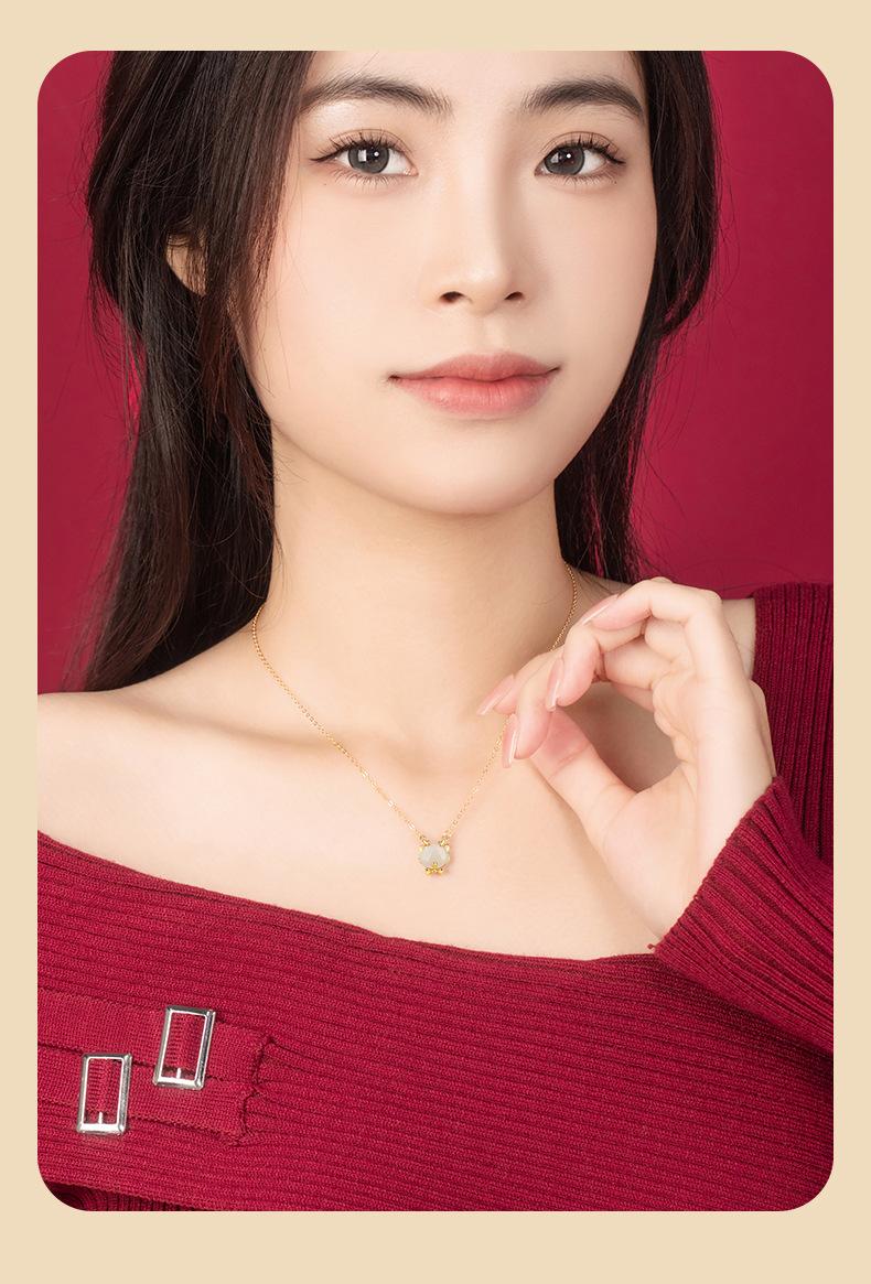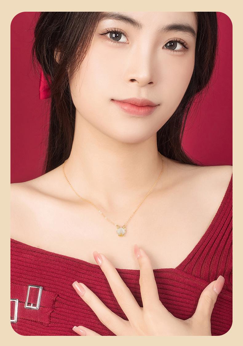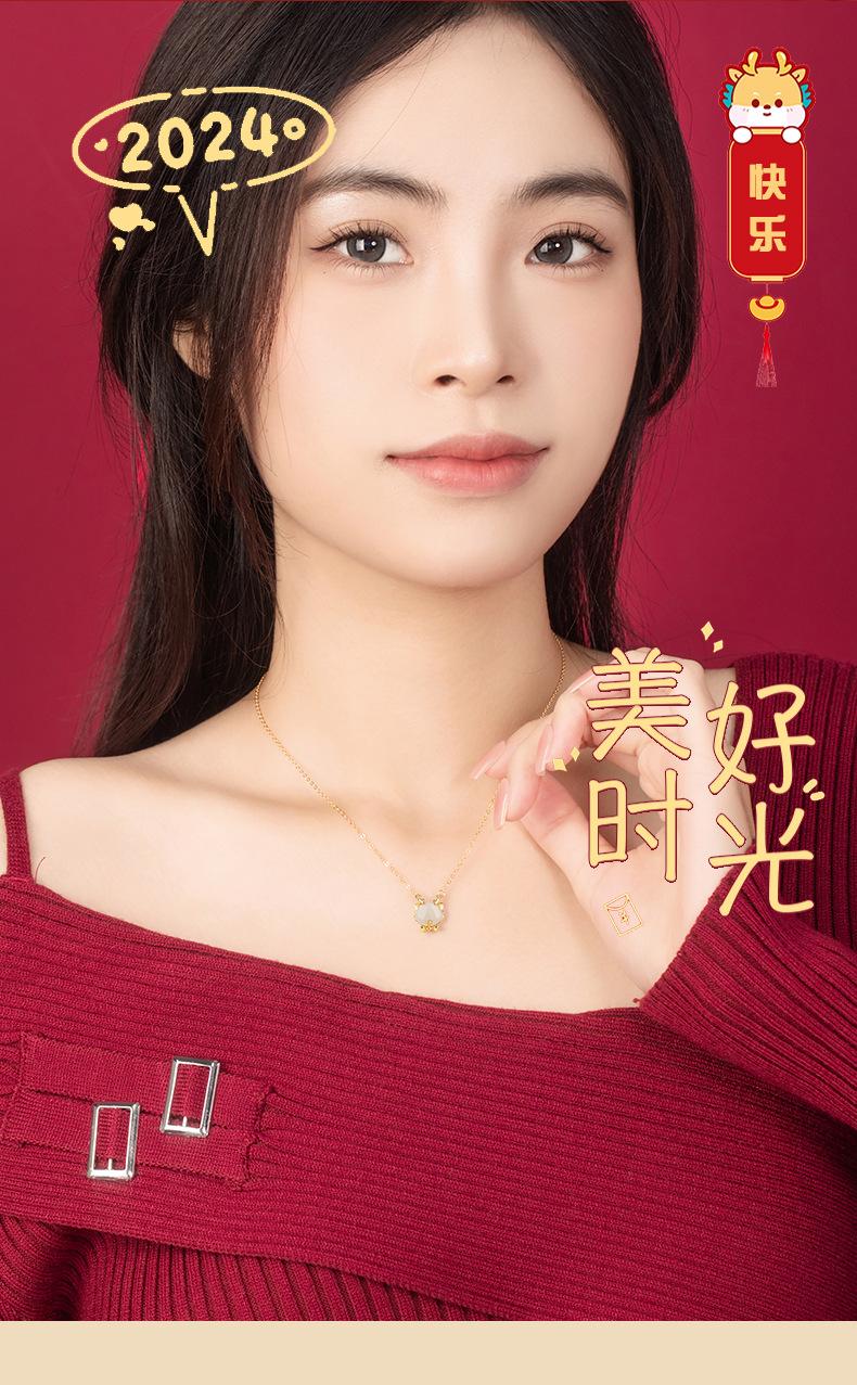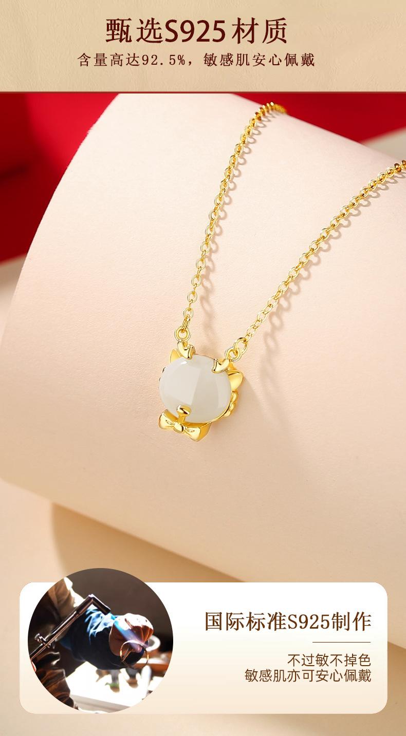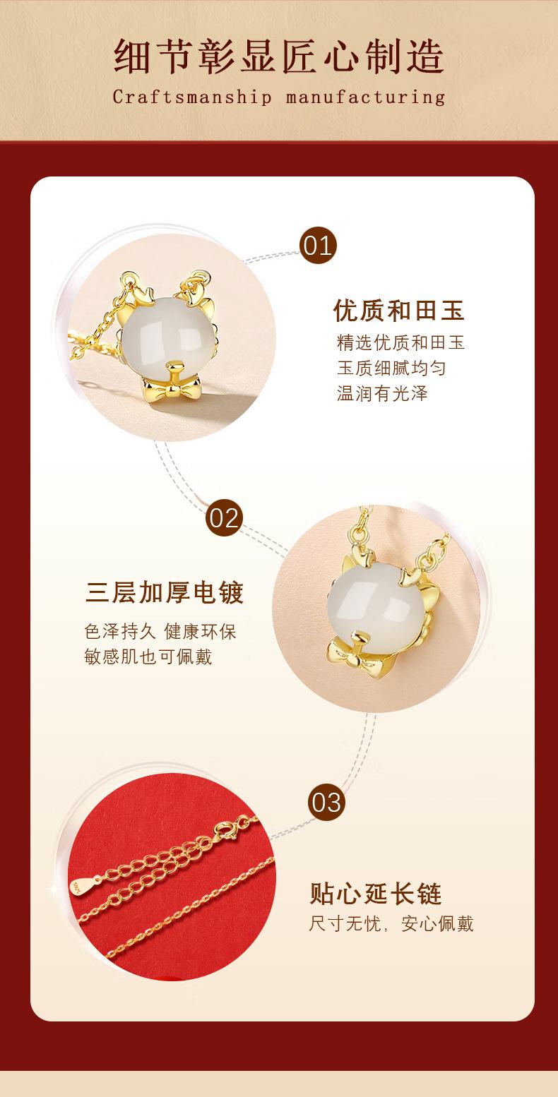 Lindo collar de jade hetiano de plata esterlina 925 con dragón, cadena de clavícula con lazo del zodiaco versátil a la moda para mujer, colgante de año de nacimiento