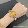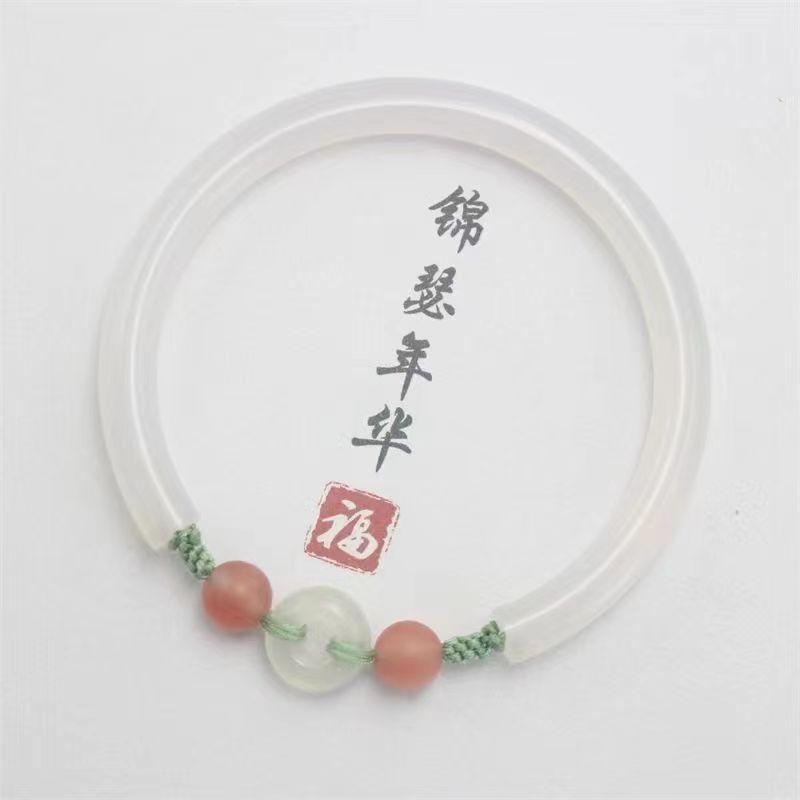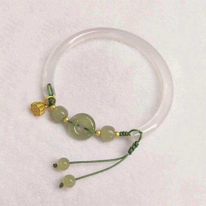 Pulsera Semiacabada de Imitación Jade Pulsera Tintineante Antigua Tira Delgada Accesorios Campana Tejida a Mano para Niña Calcedonia Fina Abierta