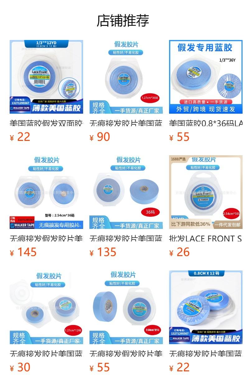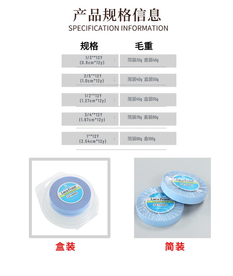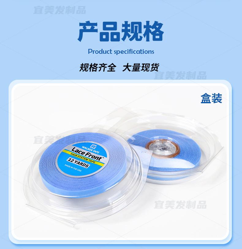 Cinta Adhesiva de Doble Cara para Peluca de Encaje Azul Americana Transfronteriza para Reemplazo de Cabello, Super Adhesiva Encaje Frontal 1/3"*12Y