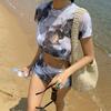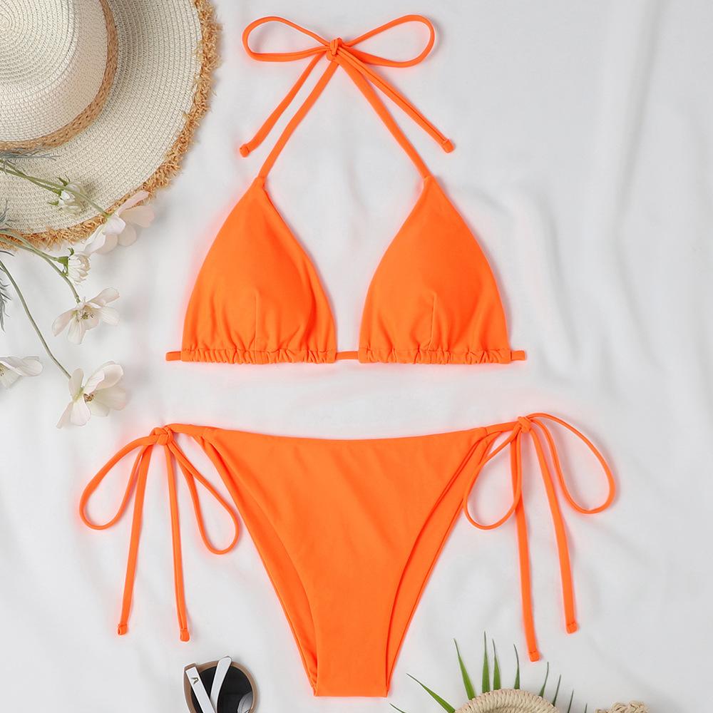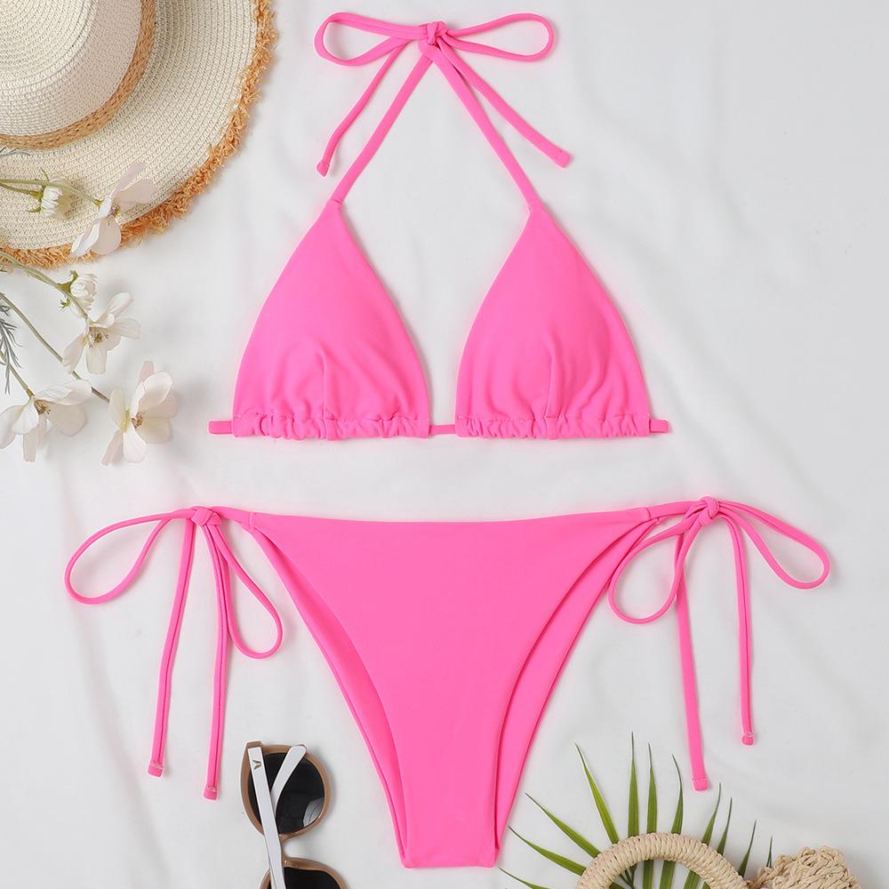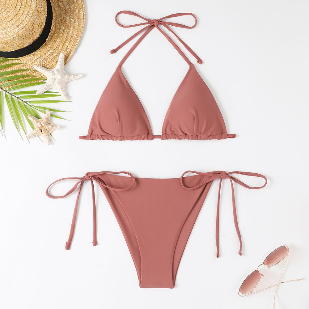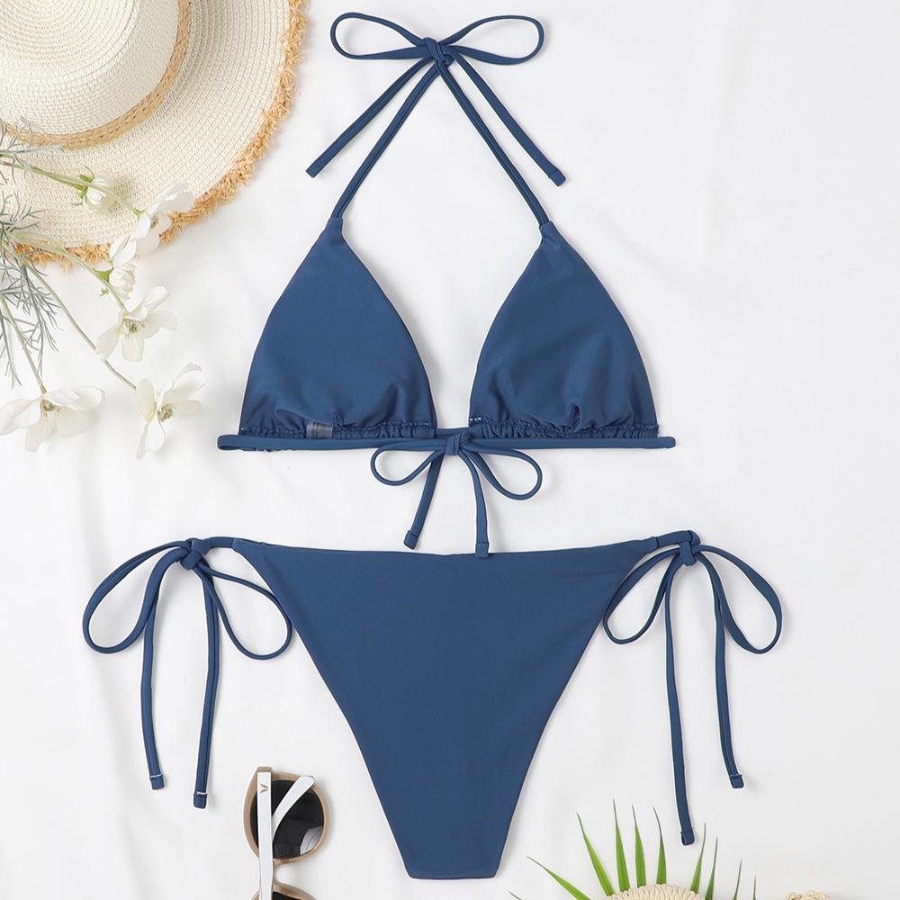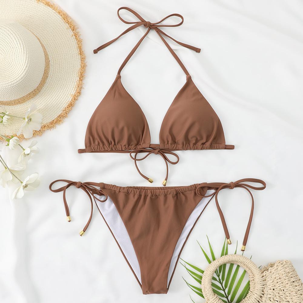 Traje de baño bikini europeo y americano transfronterizo para mujer con tirantes ajustados y copas para el pecho, nailon, nailon, sin espalda, sexy, dividido, para mujer, personalizado