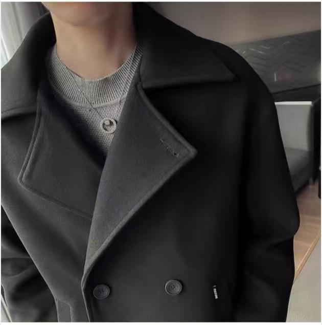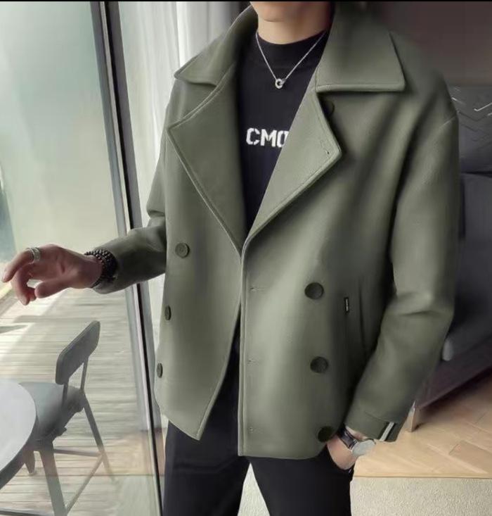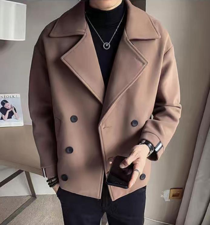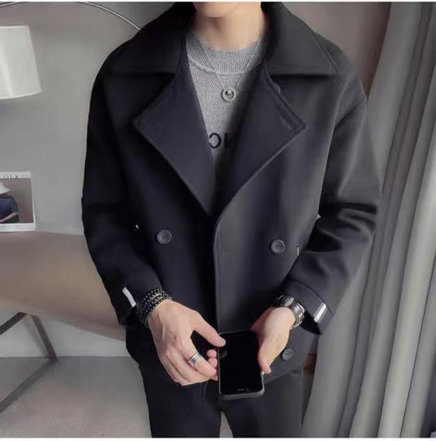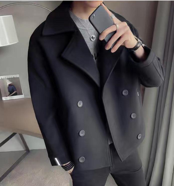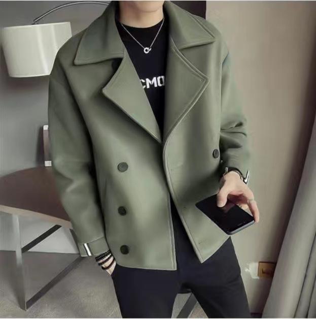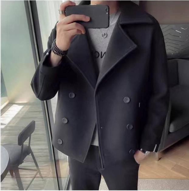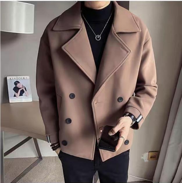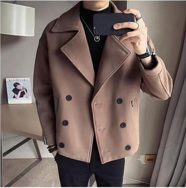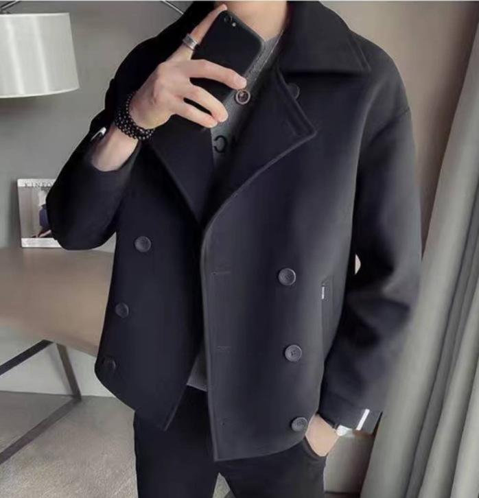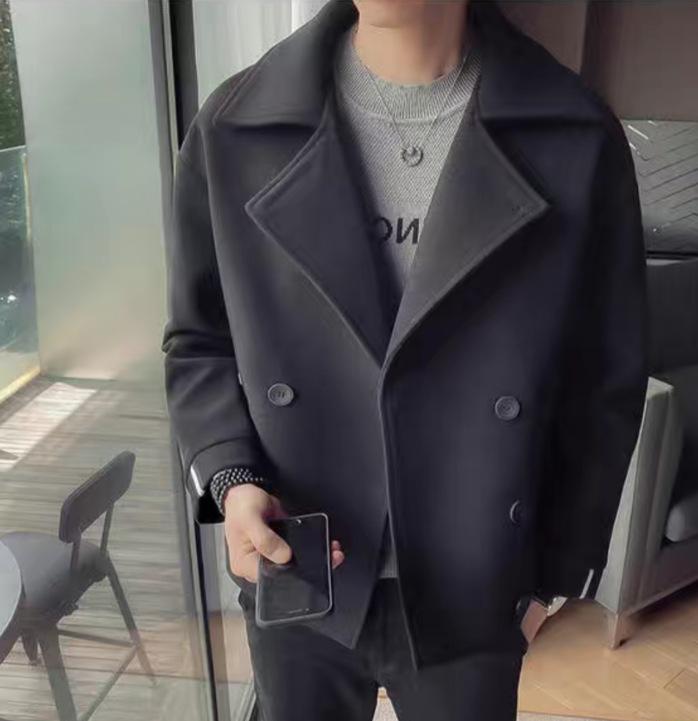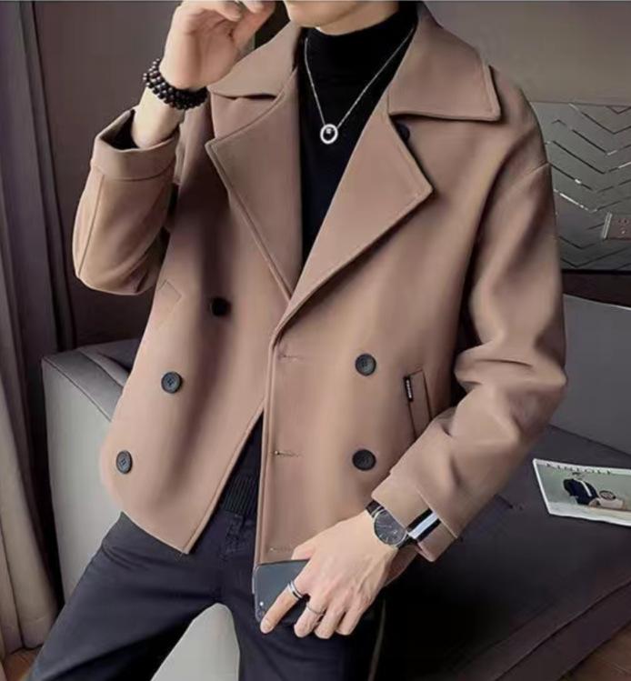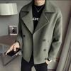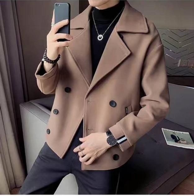 Chaqueta corta de lana de color liso para hombre, abrigo informal de solapa fina, estilo coreano, nueva, para otoño e invierno