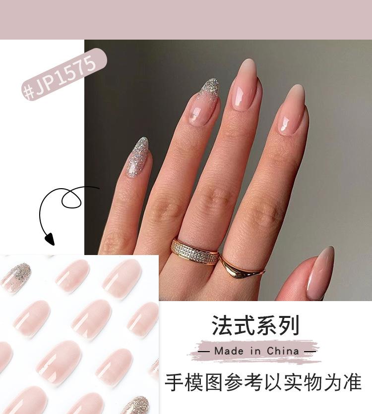 Uñas Postizas Nude con Glitter Arte de Uñas Productos Terminados al por Mayor Uñas Postizas de Gelatina al por Mayor Productos Terminados de Arte de Uñas