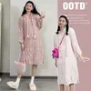 Vestido de Maternidad Otoño e Invierno Manga Larga Largo Medio con Capucha 100kg Talla Grande Falda de Maternidad Estilo Japonés y Coreano de Moda