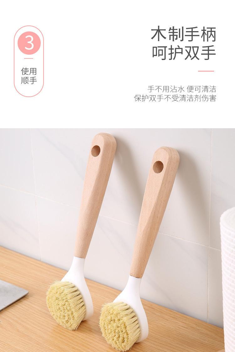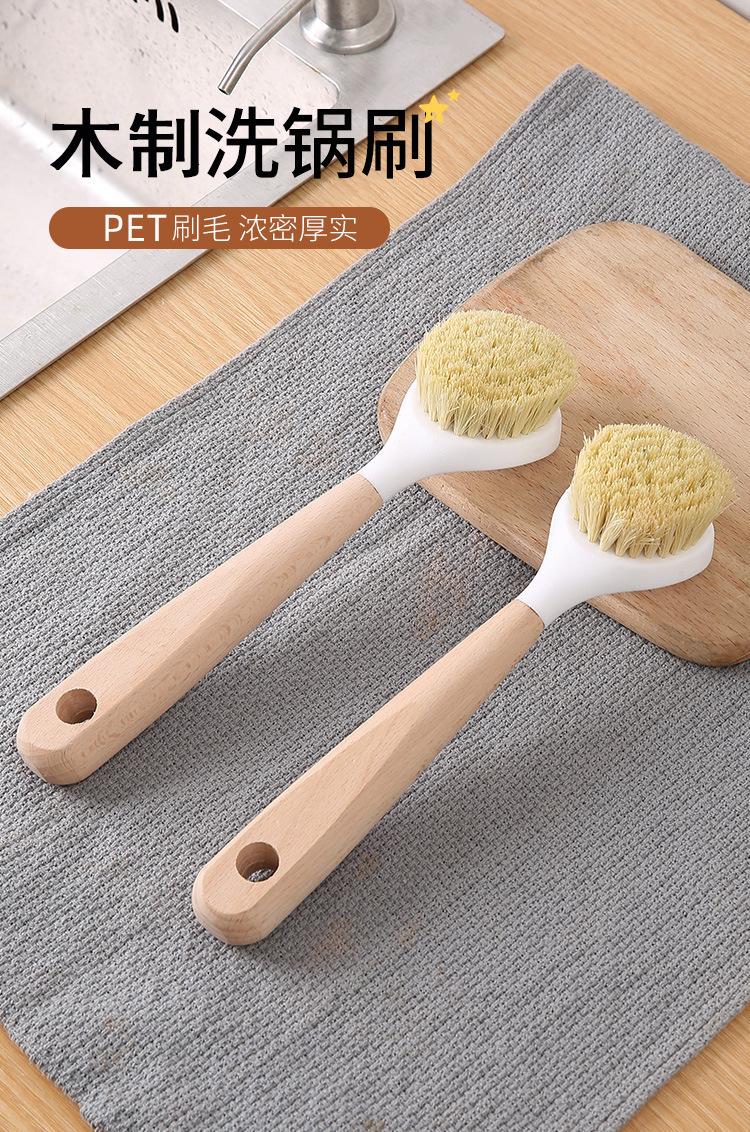 Cepillo para ollas con mango de madera, cepillo doméstico de mango largo para lavar ollas, suministros de limpieza de cocina, cepillo para ollas calientes perezoso