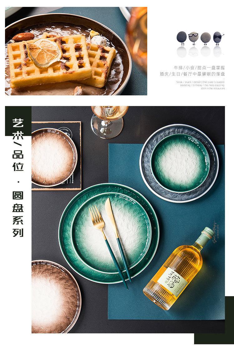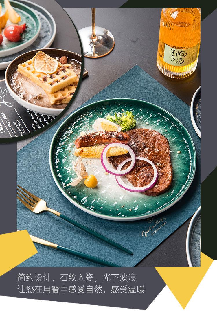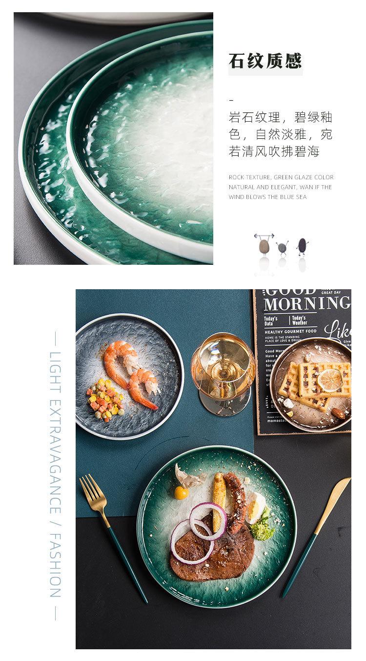 Plato plano redondo de cerámica roja de estilo nórdico para bistec, plato creativo para el hogar, juego de vajilla occidental para dim sum, vajilla combinada