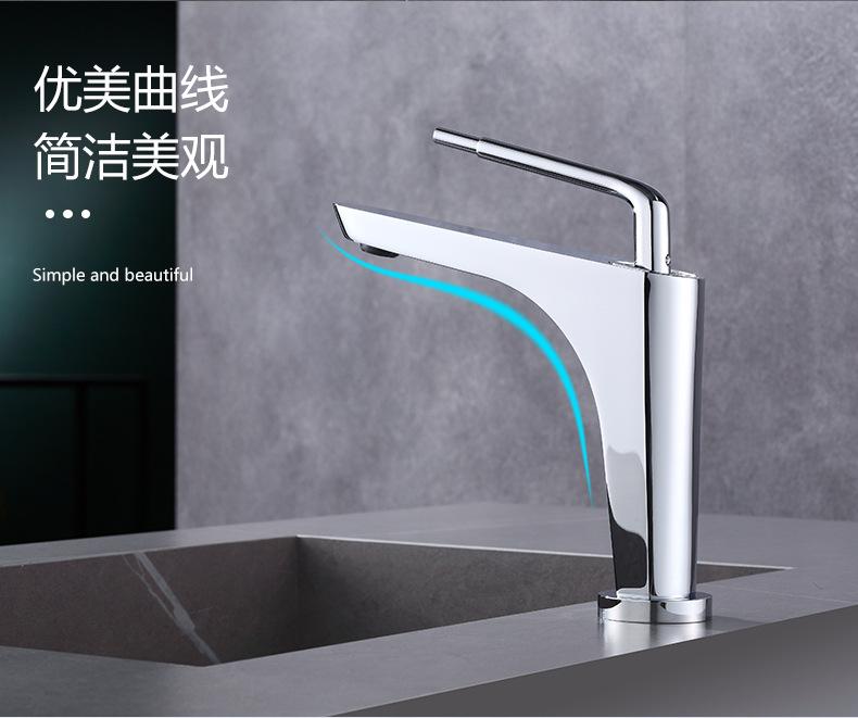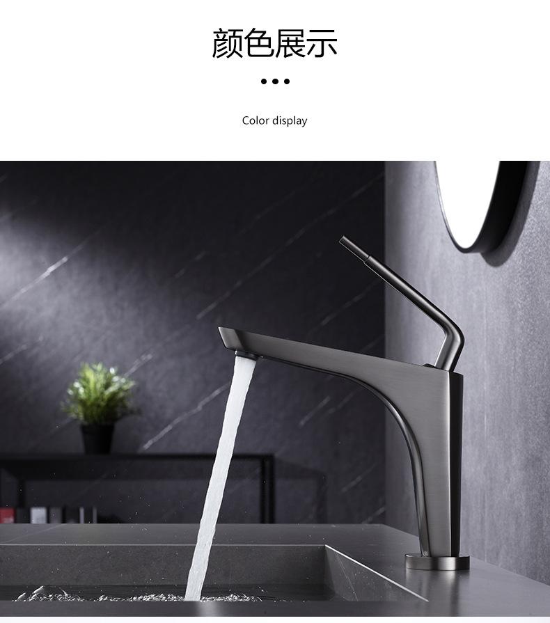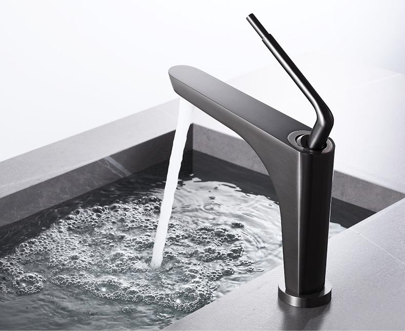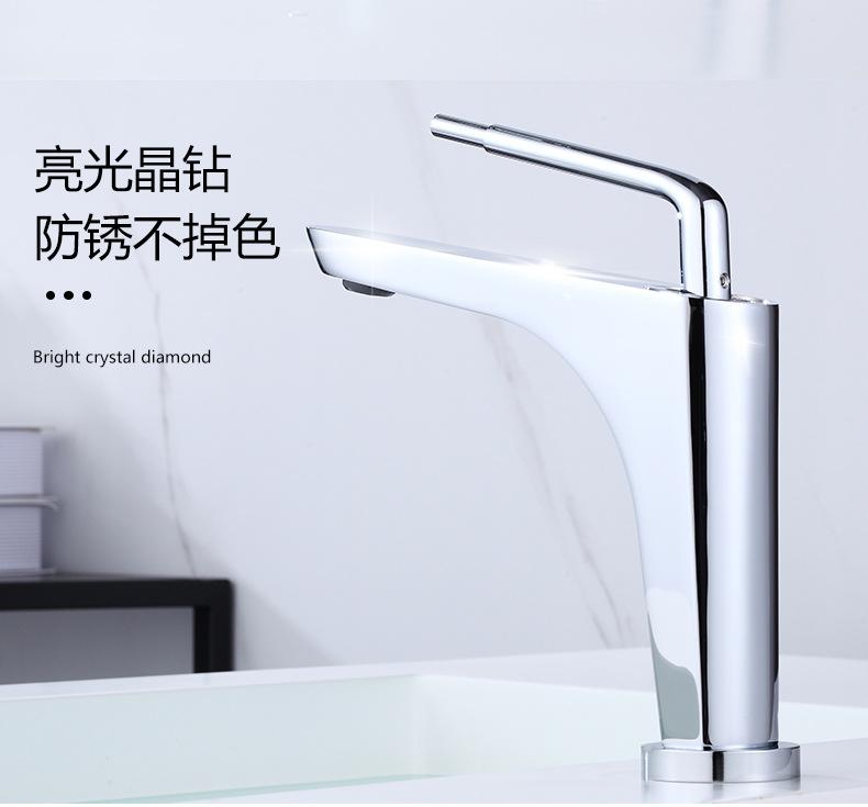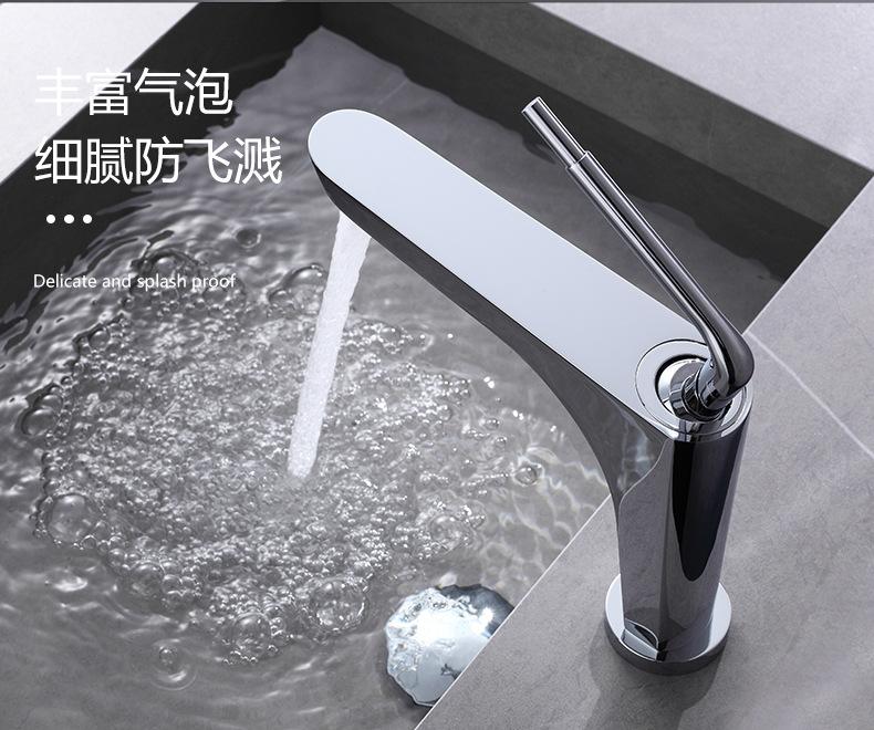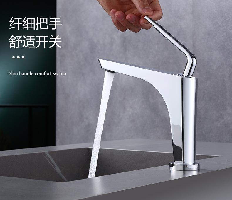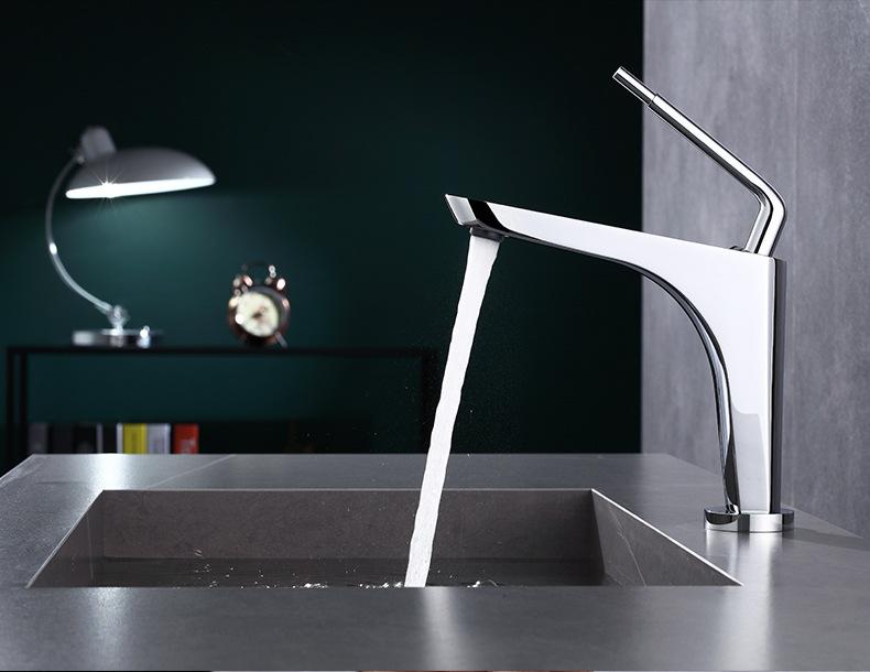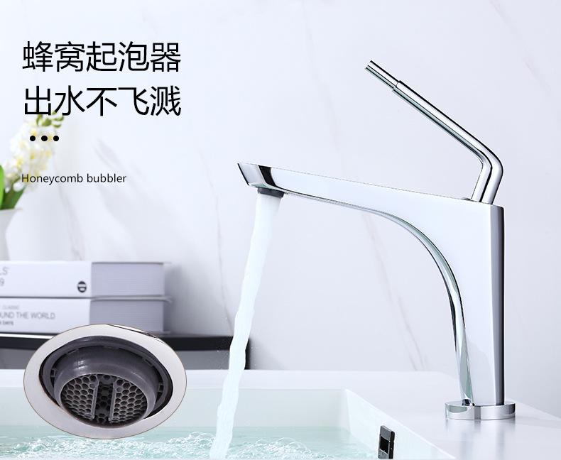 Grifo de lavabo de baño de cobre, grifo de lavabo de un solo orificio creativo para agua fría y caliente de plata