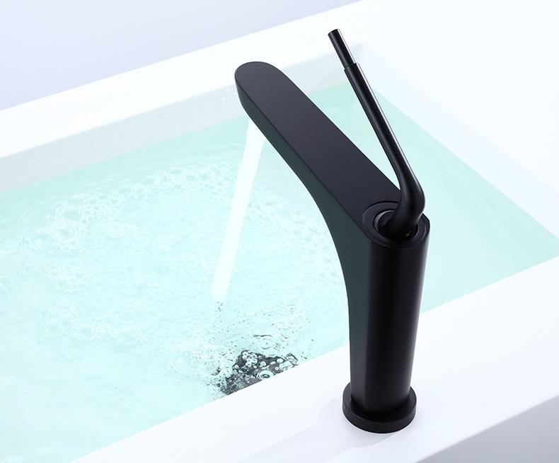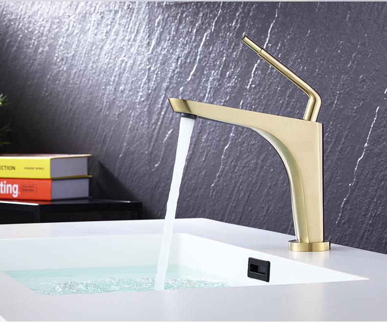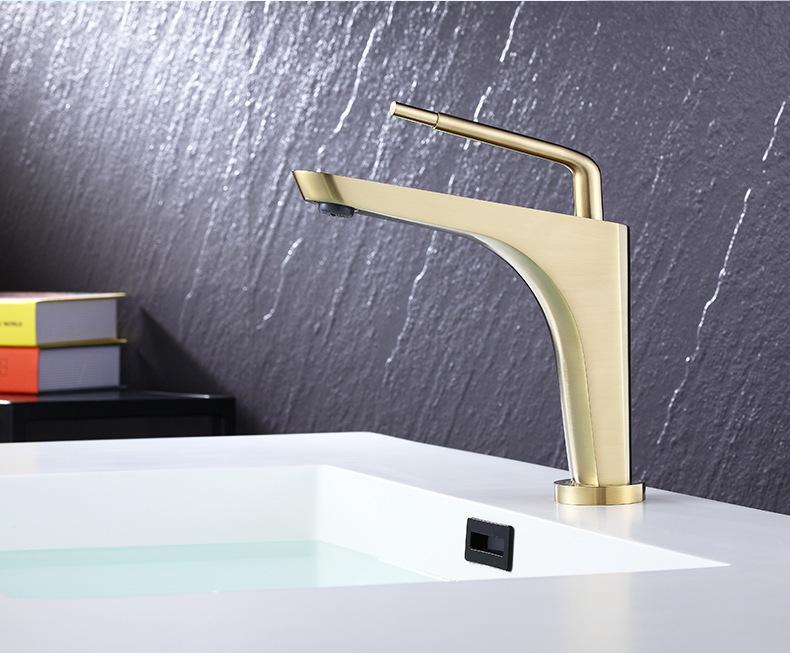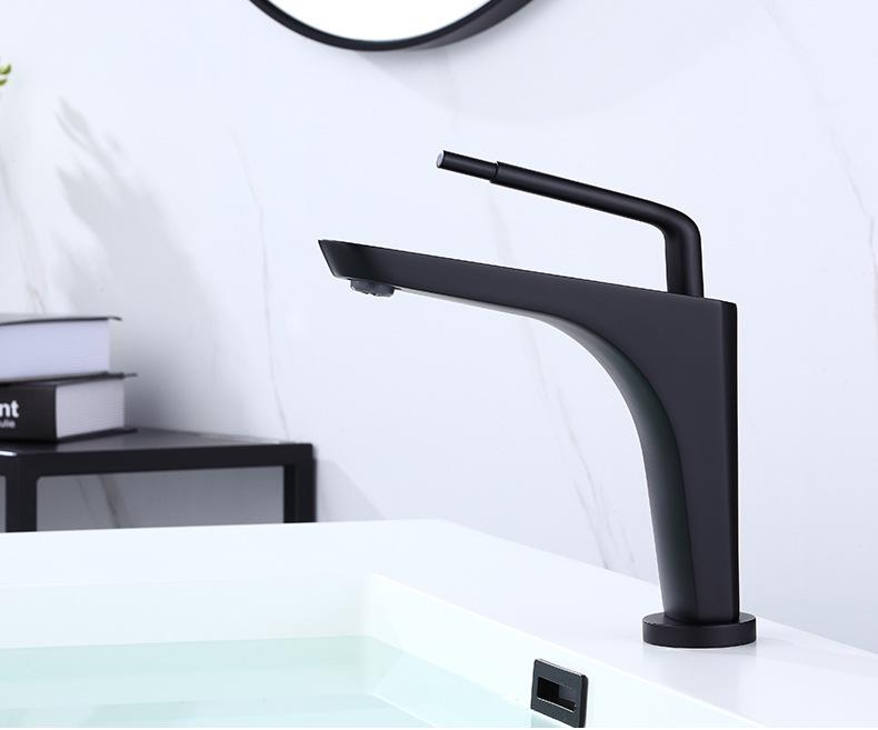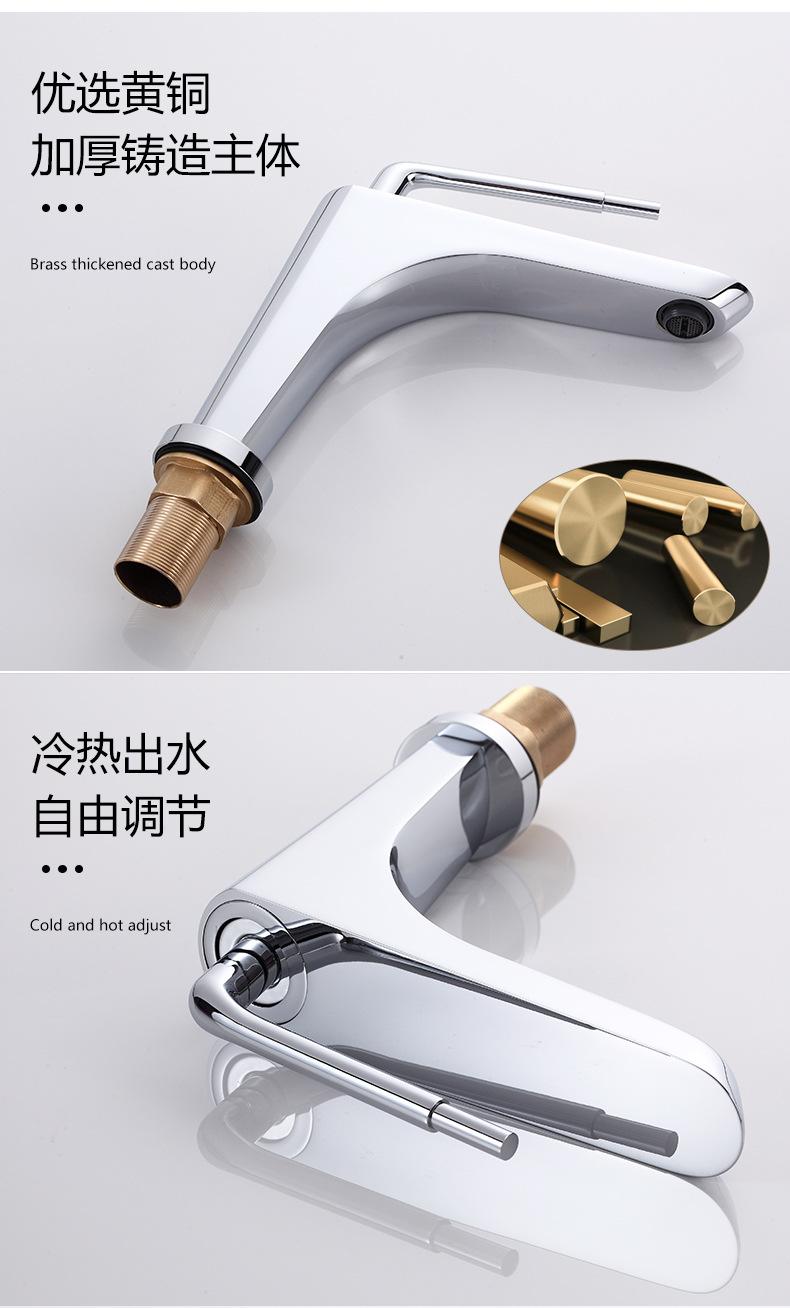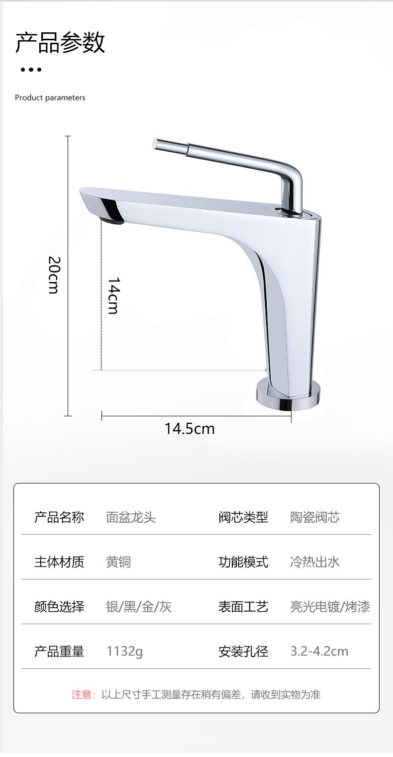 Grifo de lavabo de baño de cobre, grifo de lavabo de un solo orificio creativo para agua fría y caliente de plata