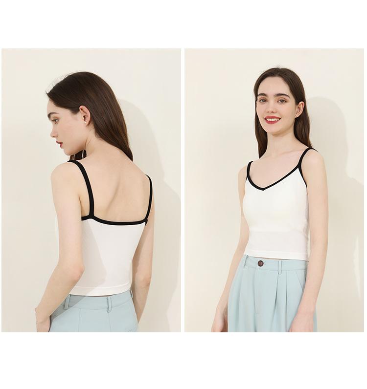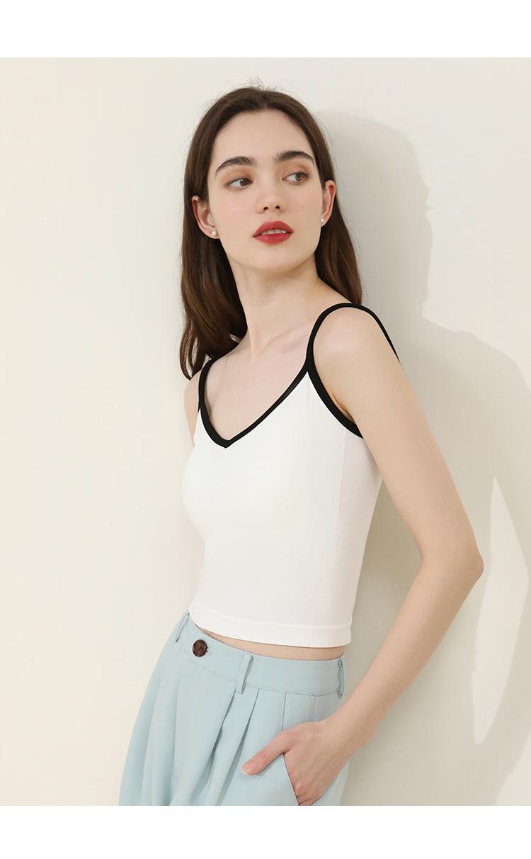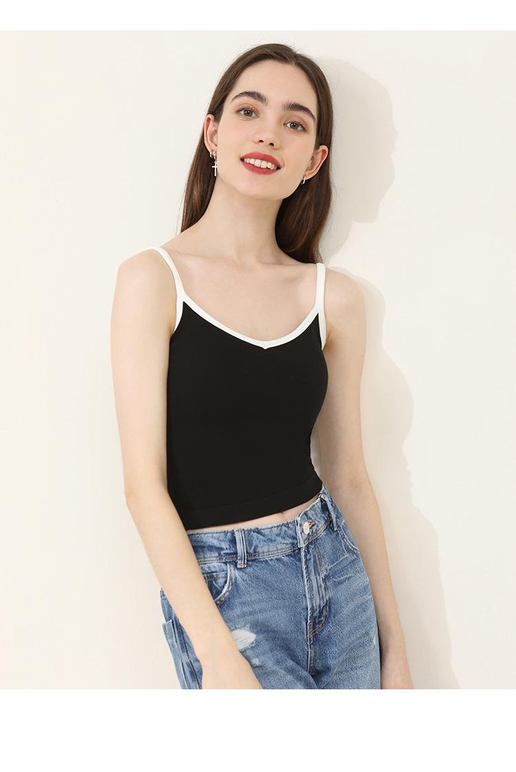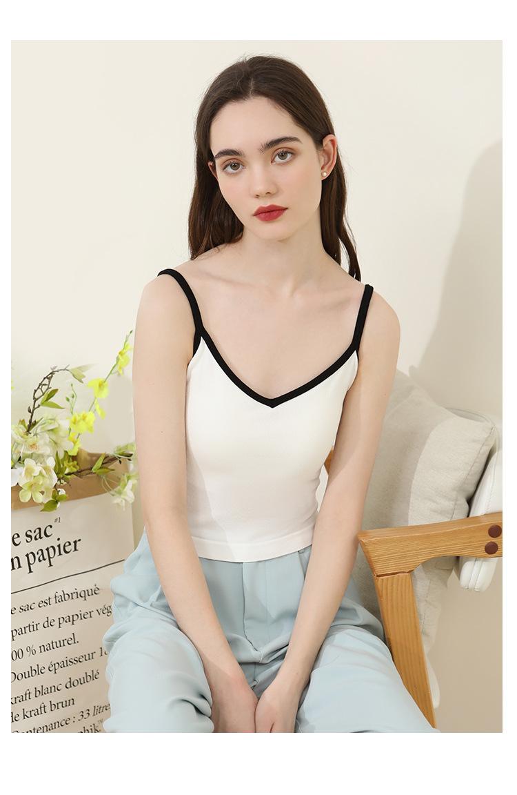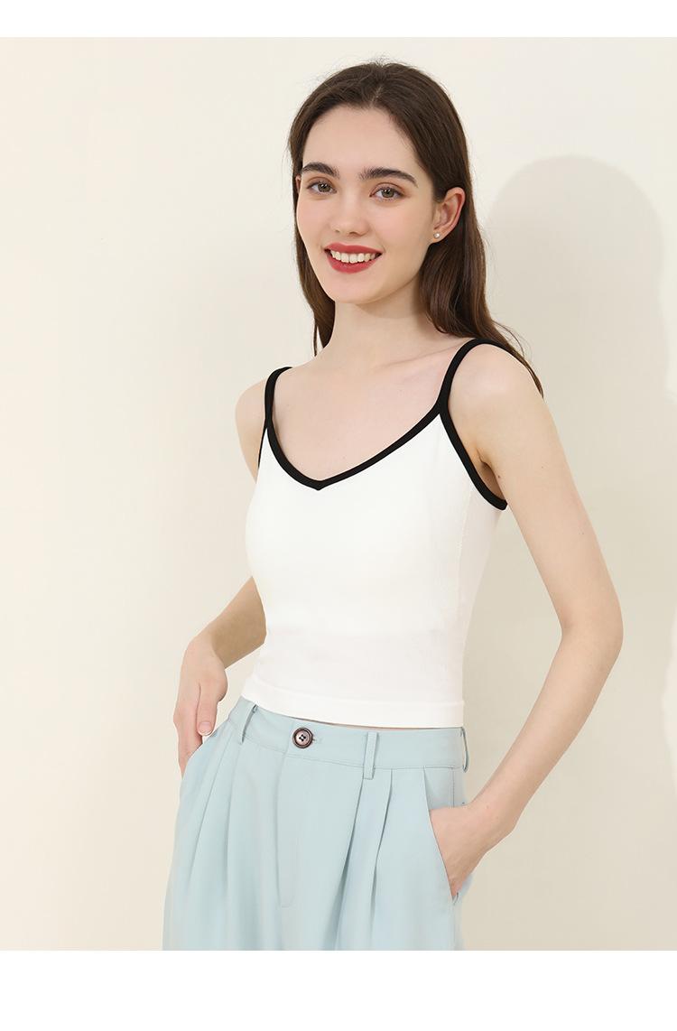 Camisola de mujer, recién llegada, corta, con escote en V y almohadilla para el pecho, ajustada, para uso exterior, con base interior, estilo atractivo.